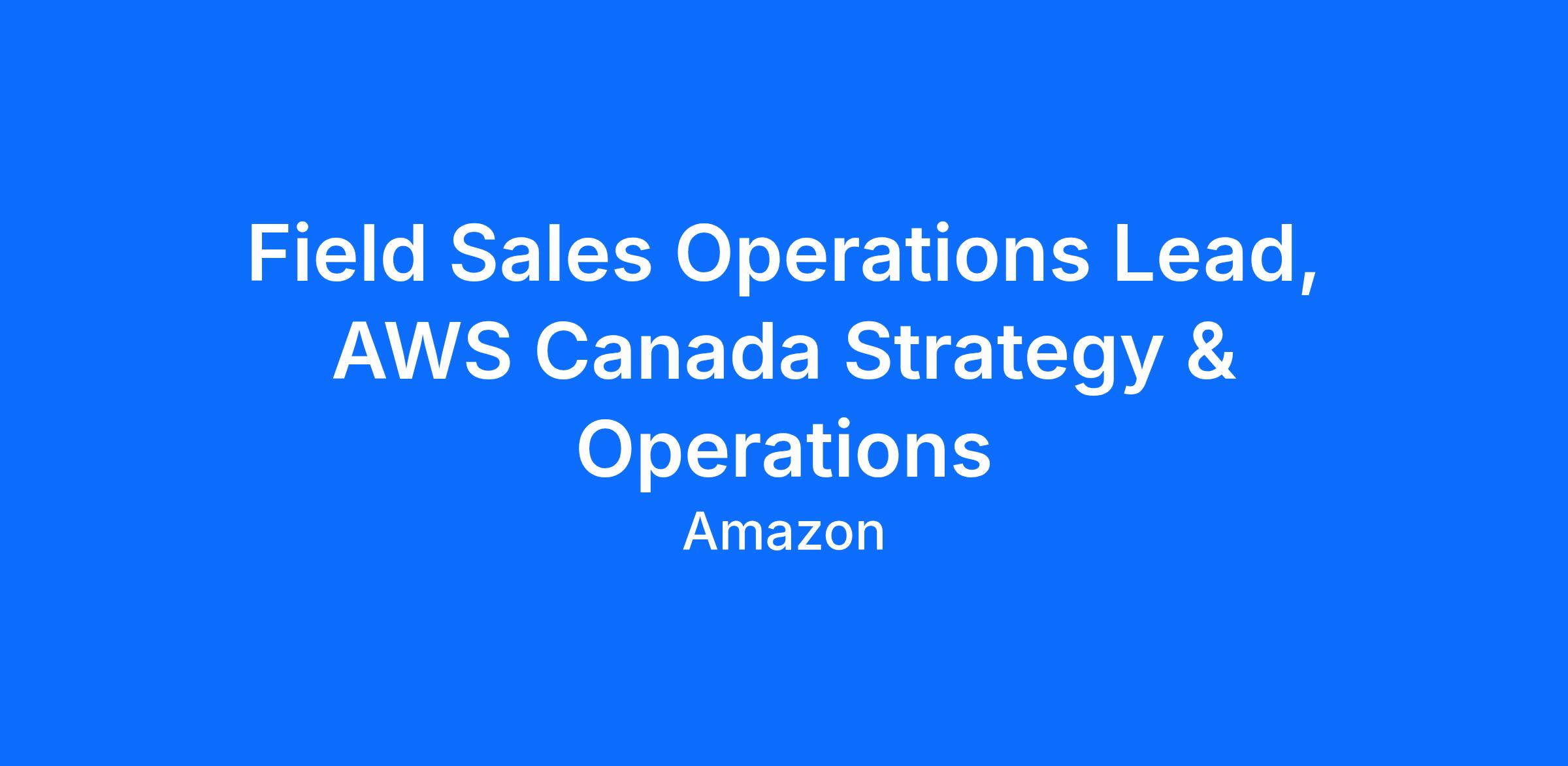 The Canada Strategy & Operations team at AWS Canada is seeking a driven, analytical, and dynamic Revenue Operations professional to lead Sales Operations for industries within Canada Enterprise. As a key business stakeholder partnering with sales leadership in our rapidly growing organization, you'll drive thrilling strategic initiatives that propel revenue growth—including pioneering AI agentic workflows to supercharge forecasting and sales enablement. Join our high-impact Operations team to shape the future of cloud sales, helping elite sales reps crush metrics in Financial Services and Media & Entertainment verticals through data mastery and innovative tools.