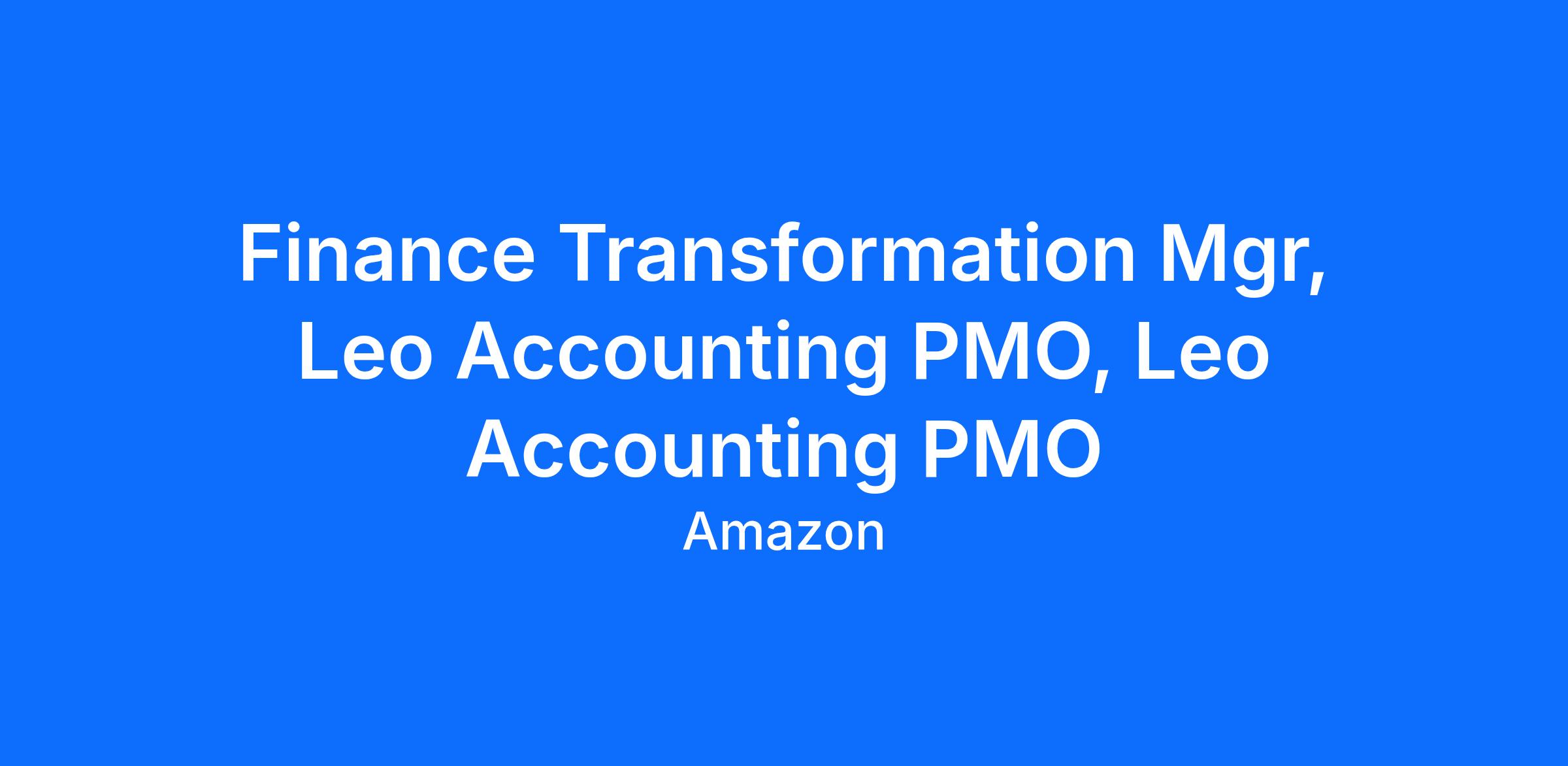 It’s a new Day 1 for Leo and we are looking for team members to join the Accounting PMO supporting this emerging business.