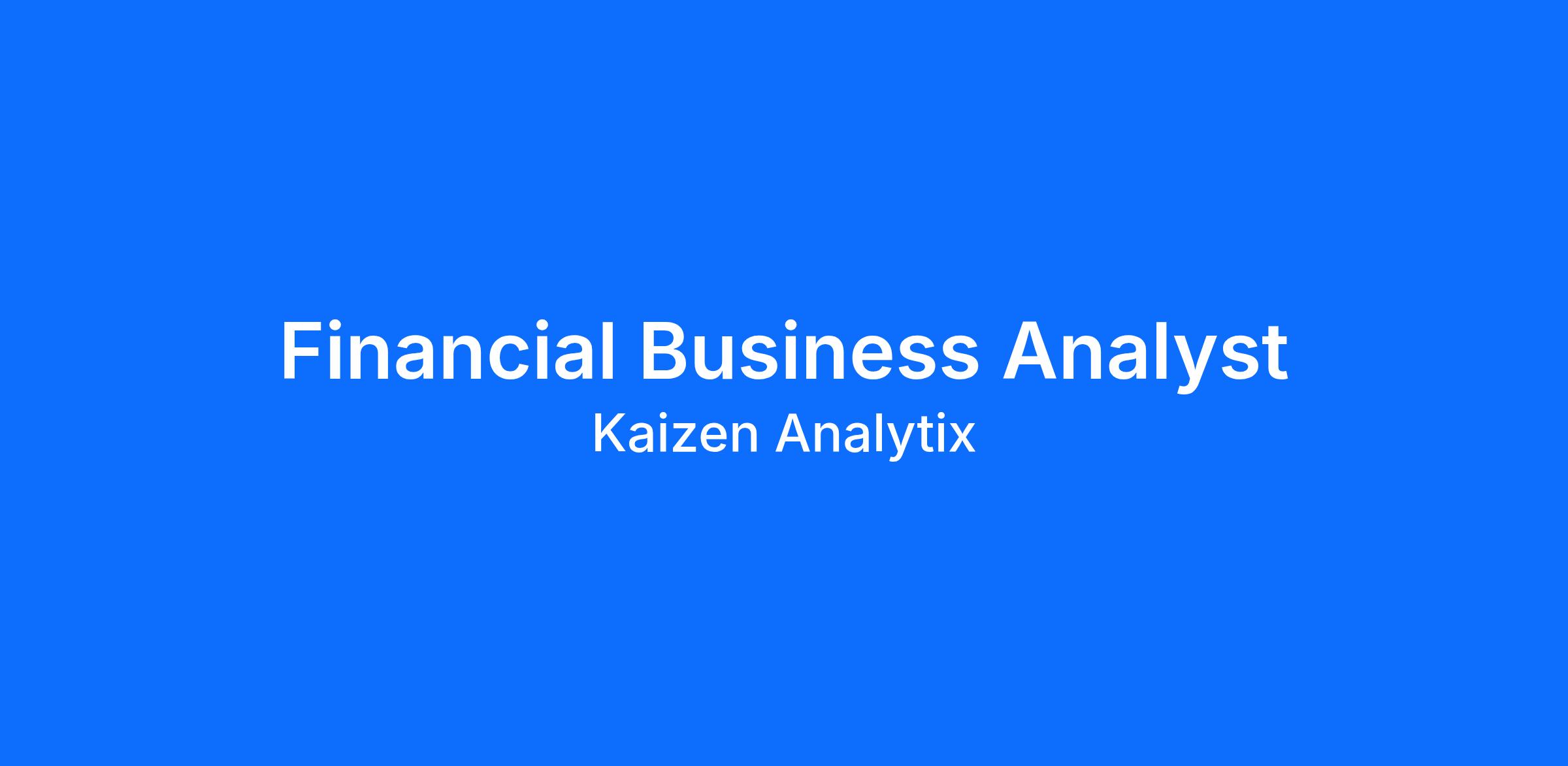 We are seeking a highly analytical and detail-oriented Financial Business Analyst with strong financial acumen to support business operations and strategic initiatives. This role requires expertise in business analysis, financial processes, and data-driven decision-making. The ideal candidate is a strong communicator, thrives in a collaborative environment, and can translate complex financial and operational needs into actionable insights.