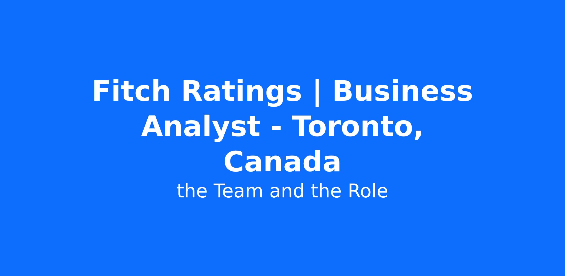 Fitch Ratings is currently seeking a Business Analyst, based out of our Toronto, Canada office.