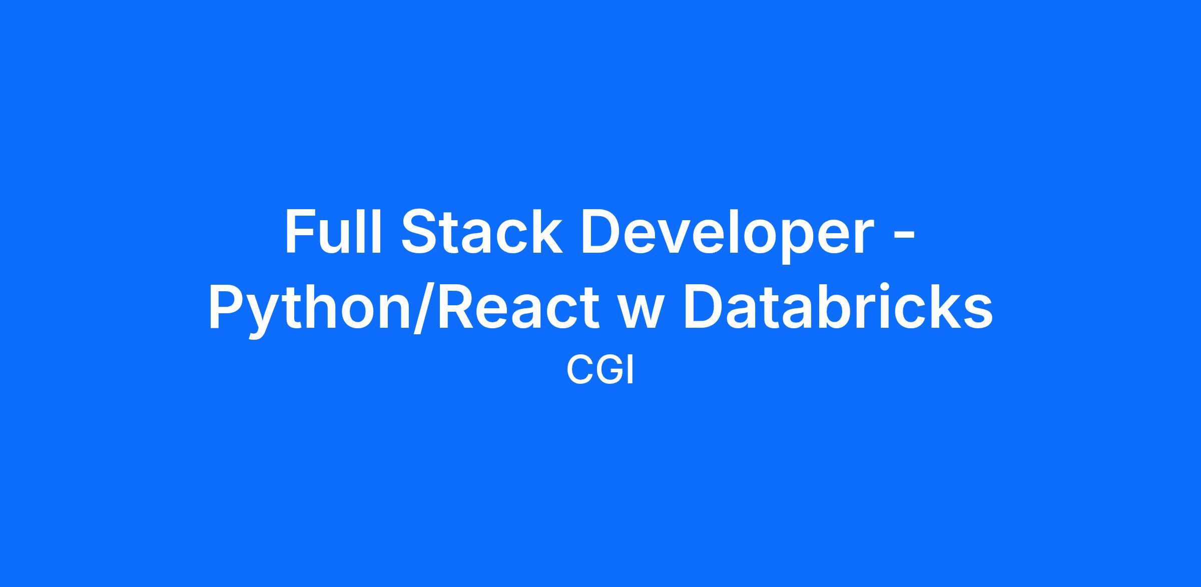 • Mandatory: Solid experience with Python (backend), React, Databricks, and Azure Data Factory (5+ years preferred).