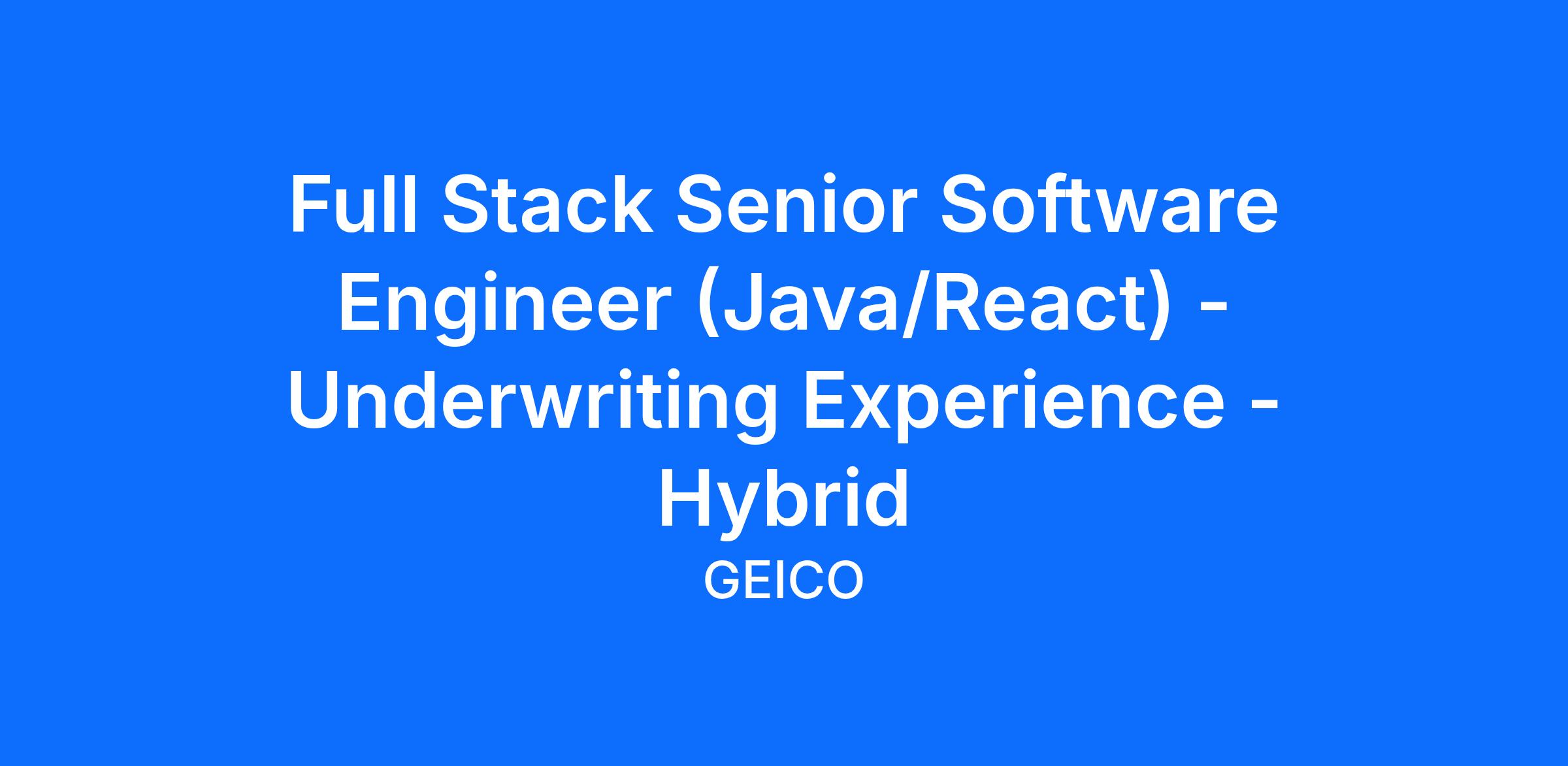 GEICO is seeking a Full Stack Senior Software Engineer to join our Underwriting Experience team that brings experience in Java and React with exposure to Document Generation and/or Customer Communication tools. In this role, you will help modernize how we send correspondence between our customers and agents while enhancing the user experience for both. We are driving our insurance business transformation by designing, developing, and deploying core consumer experiences that leverage AI, ensuring they are robust, scalable and production ready.