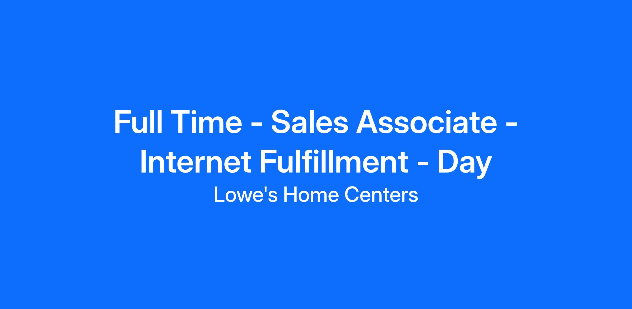 Full Time - Sales Associate - Internet Fulfillment - Day