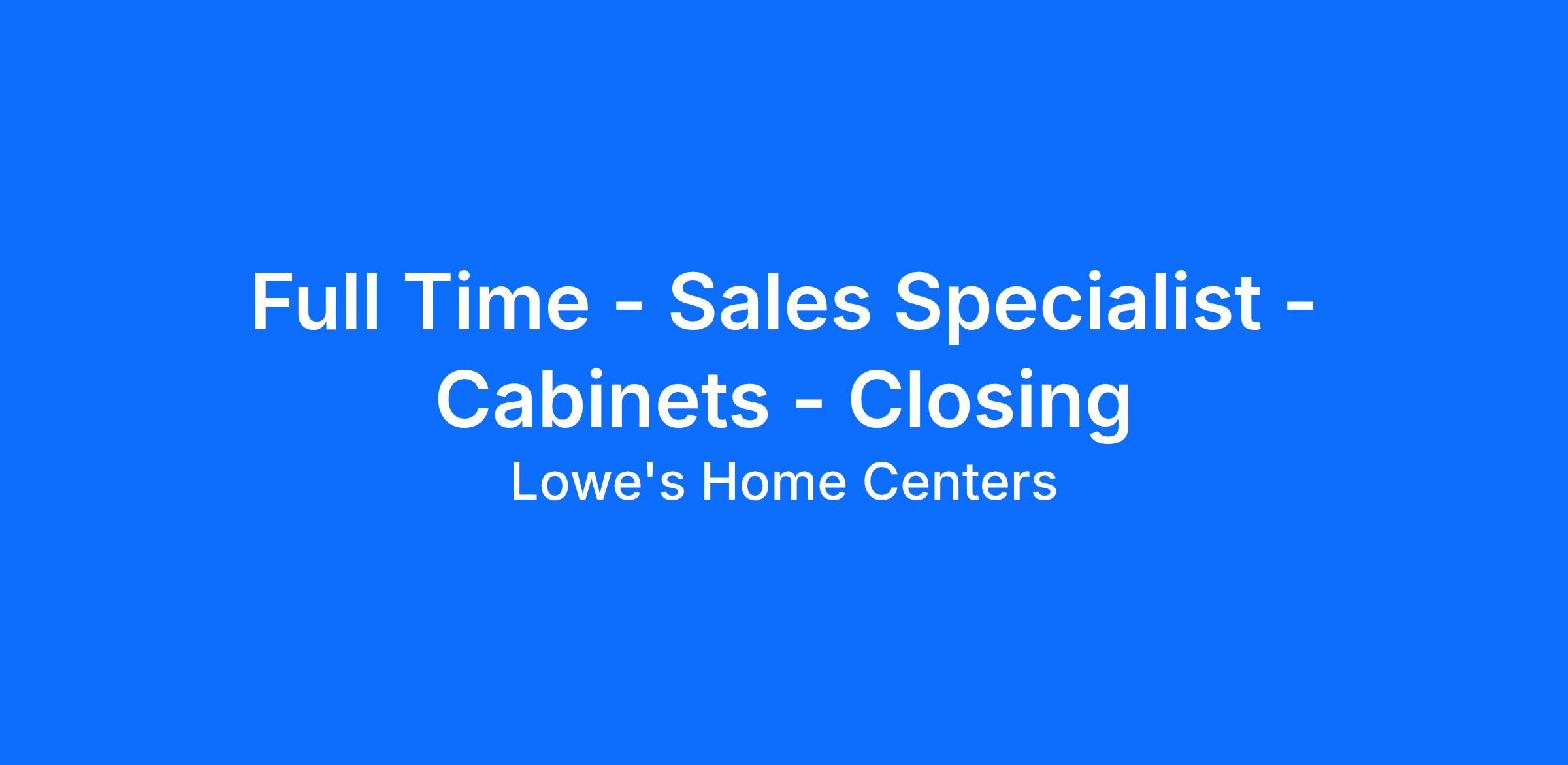 Your Impact at Lowe'sAs a Sales Specialist, you will be one of the first people our customers meet. Your sales expertise can help customers find the products they need and encourage them to transform a great project idea into reality. If you enjoy helping people and solving problems in a fast-paced environment, this is the perfect role for you.