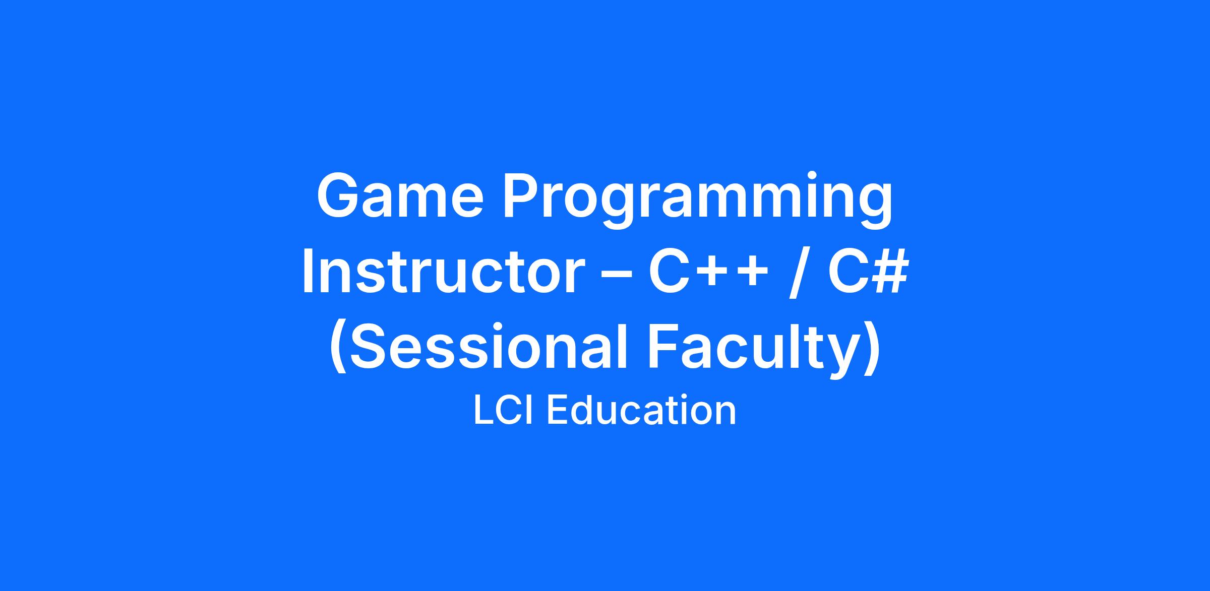 Game Programming Instructor – C++ / C# (Sessional Faculty)