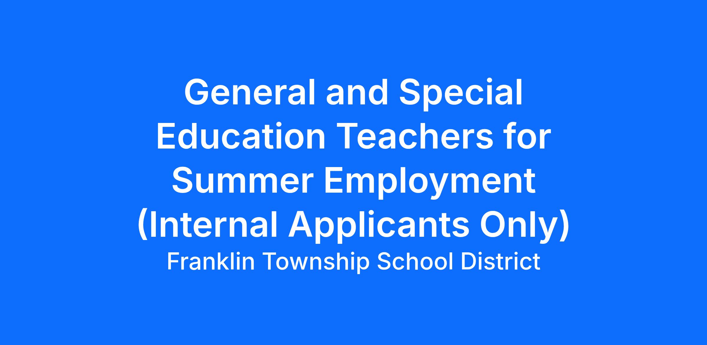 Franklin Township School - Summer Employment (Internal Applicants Only)