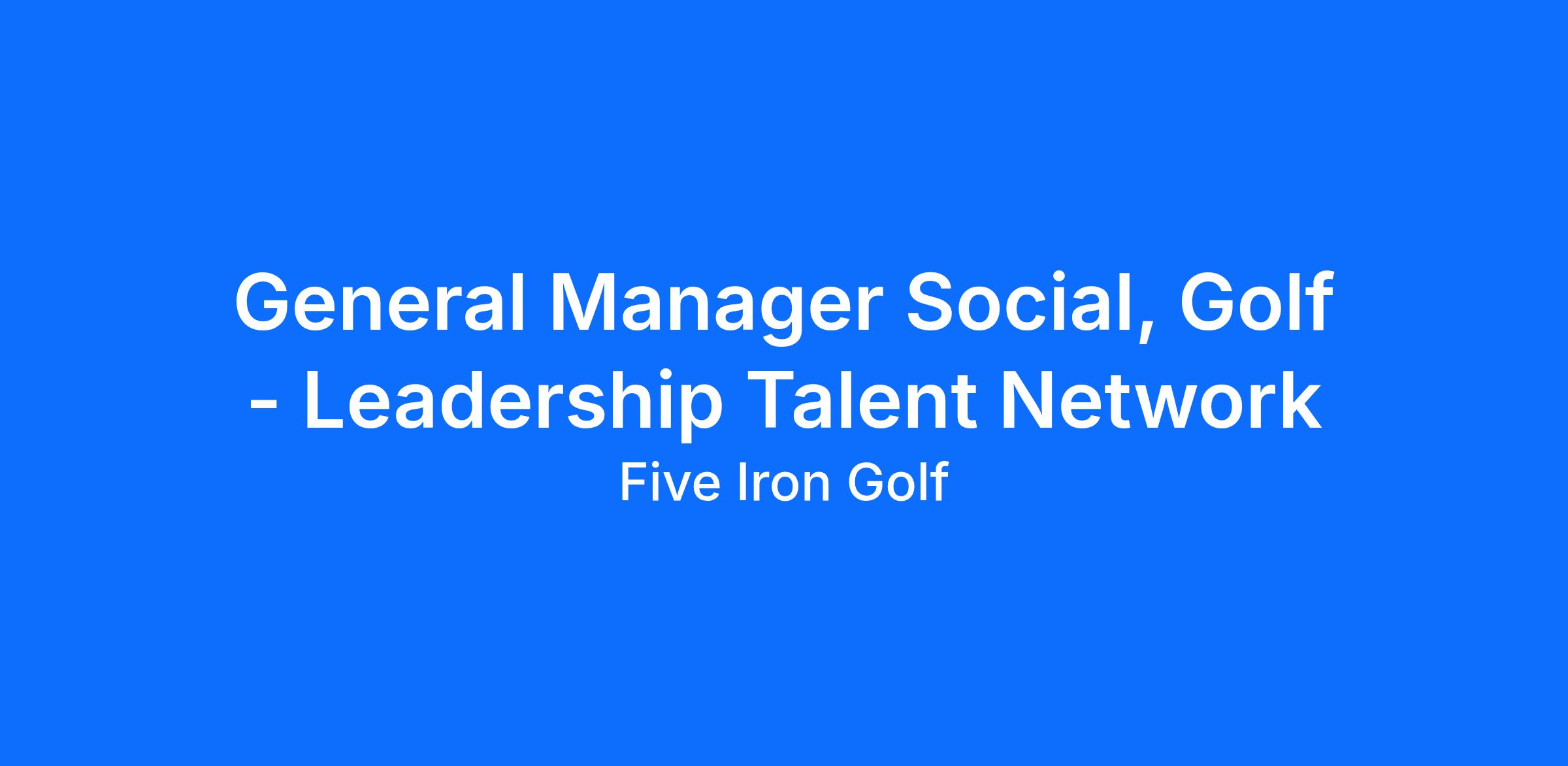 This posting represents our General Manager – Social Leadership Talent Network across current and future markets. We are proactively identifying experienced hospitality leaders who want to grow with Five Iron as expansion continues.