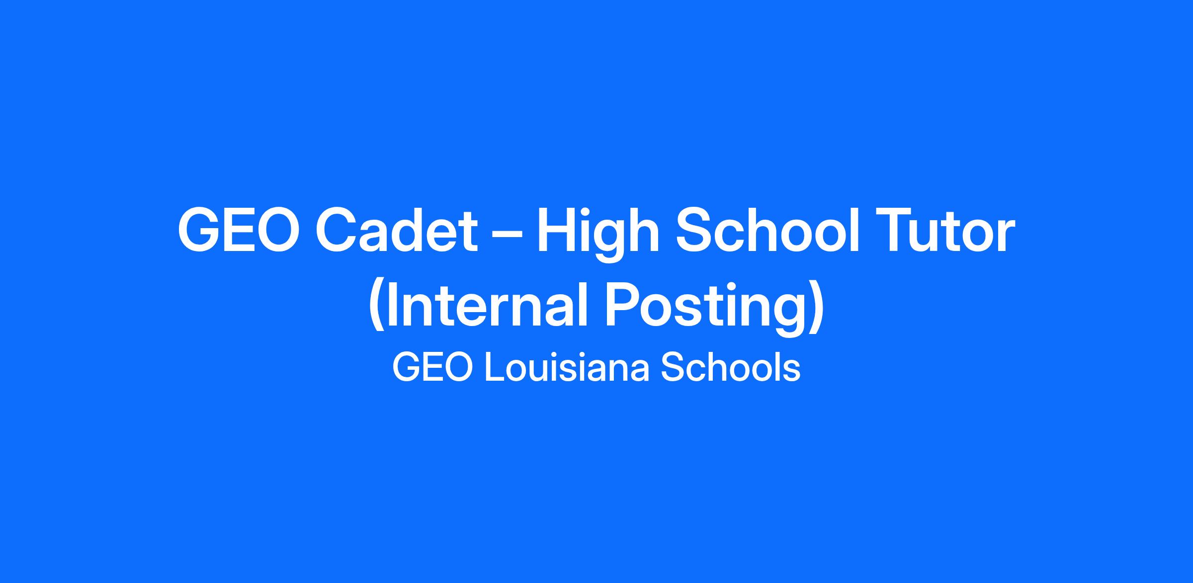 GEO Academies is seeking motivated, responsible, and student-centered high school seniors to join our team as GEO Cadets—paid academic tutors who will work directly with younger students in small-group and one-on-one settings. As a GEO Cadet, you will provide instructional support in literacy, helping K–3 students build foundational skills and develop confidence in the classroom.