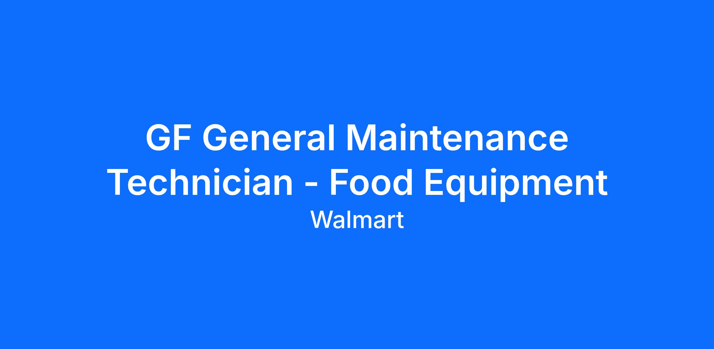 APPLY HERE: https://walmart.wd5.myworkdayjobs.com/en-US/WalmartExternal/job/Technician--General-Facilities-Maintenance---Food-Equipment_R-2384417-1