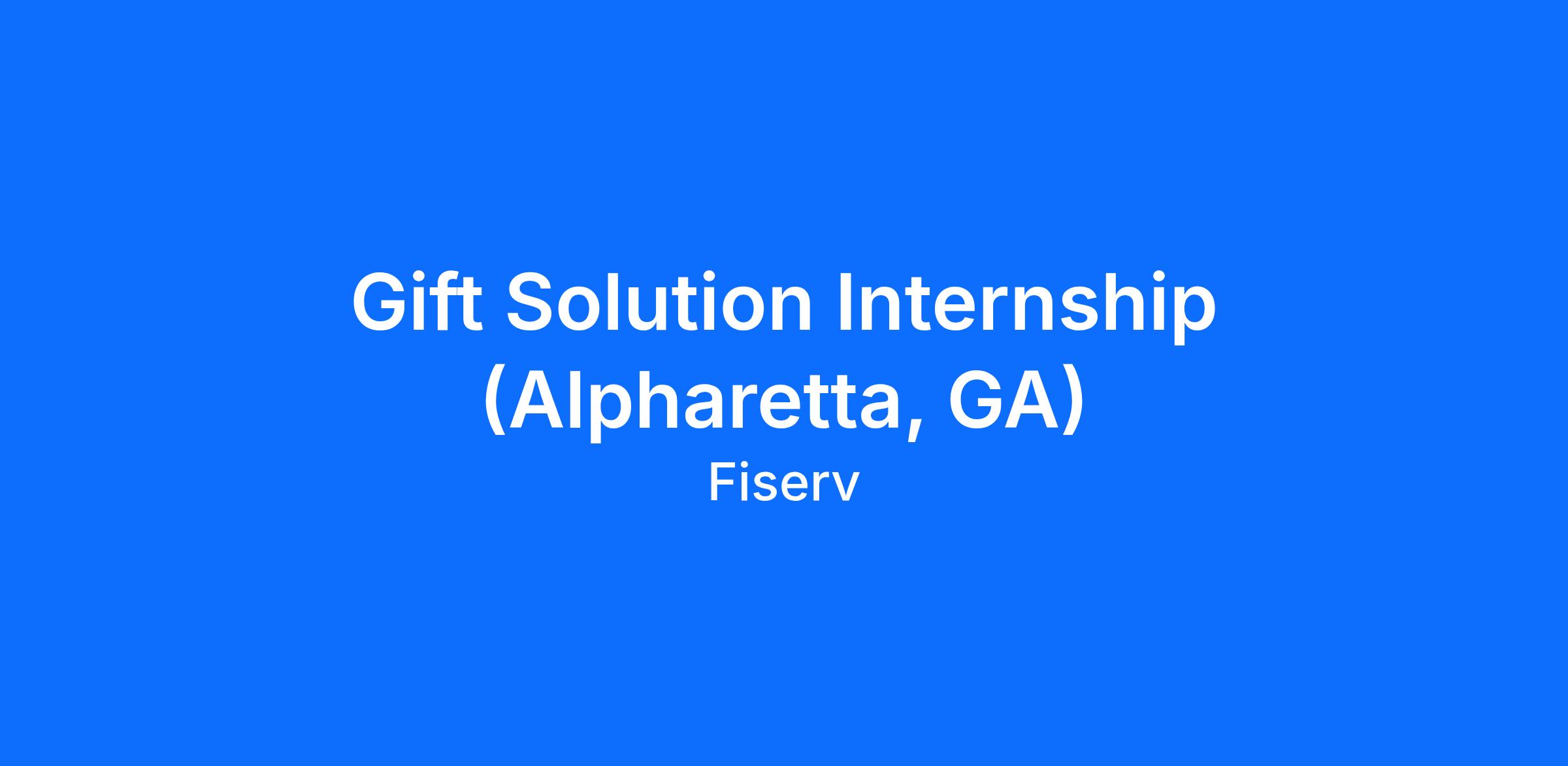 Gift Solution Internship (Alpharetta, GA)What does a successful Gift Solutions Intern do at Fiserv?