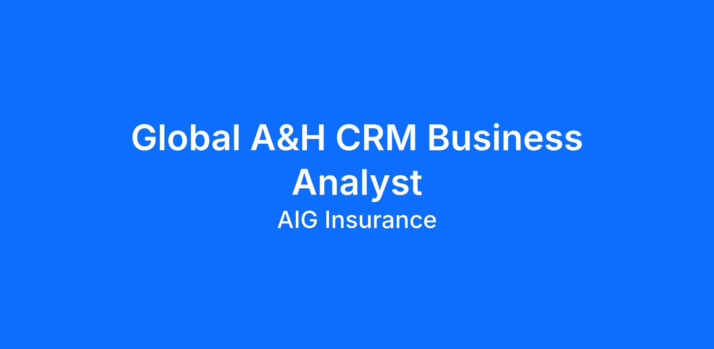 At AIG, we are reimagining the way we help customers to manage risk. Join us as a Global A&H CRM Business Analyst to play your part in that transformation. It’s an opportunity to grow your skills and experience as a valued member of the team.