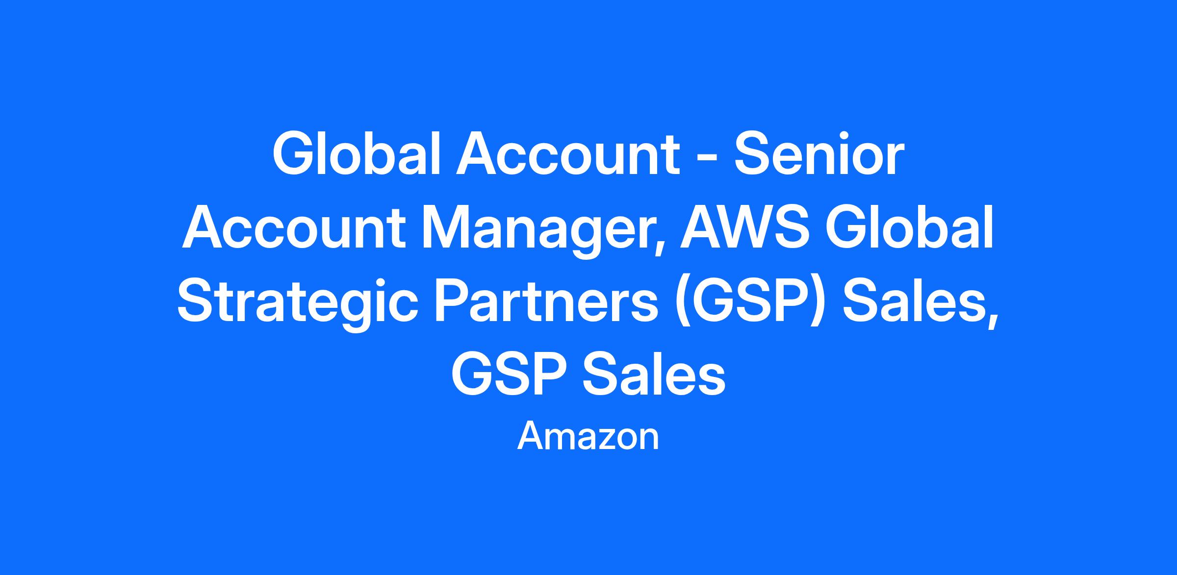 Amazon Web Services (AWS) is seeking talented individuals for the Global Strategic Partner (GSP) Sales team focused on growing business and shaping the cloud industry with the world’s largest, most strategic, multinational GSPs.