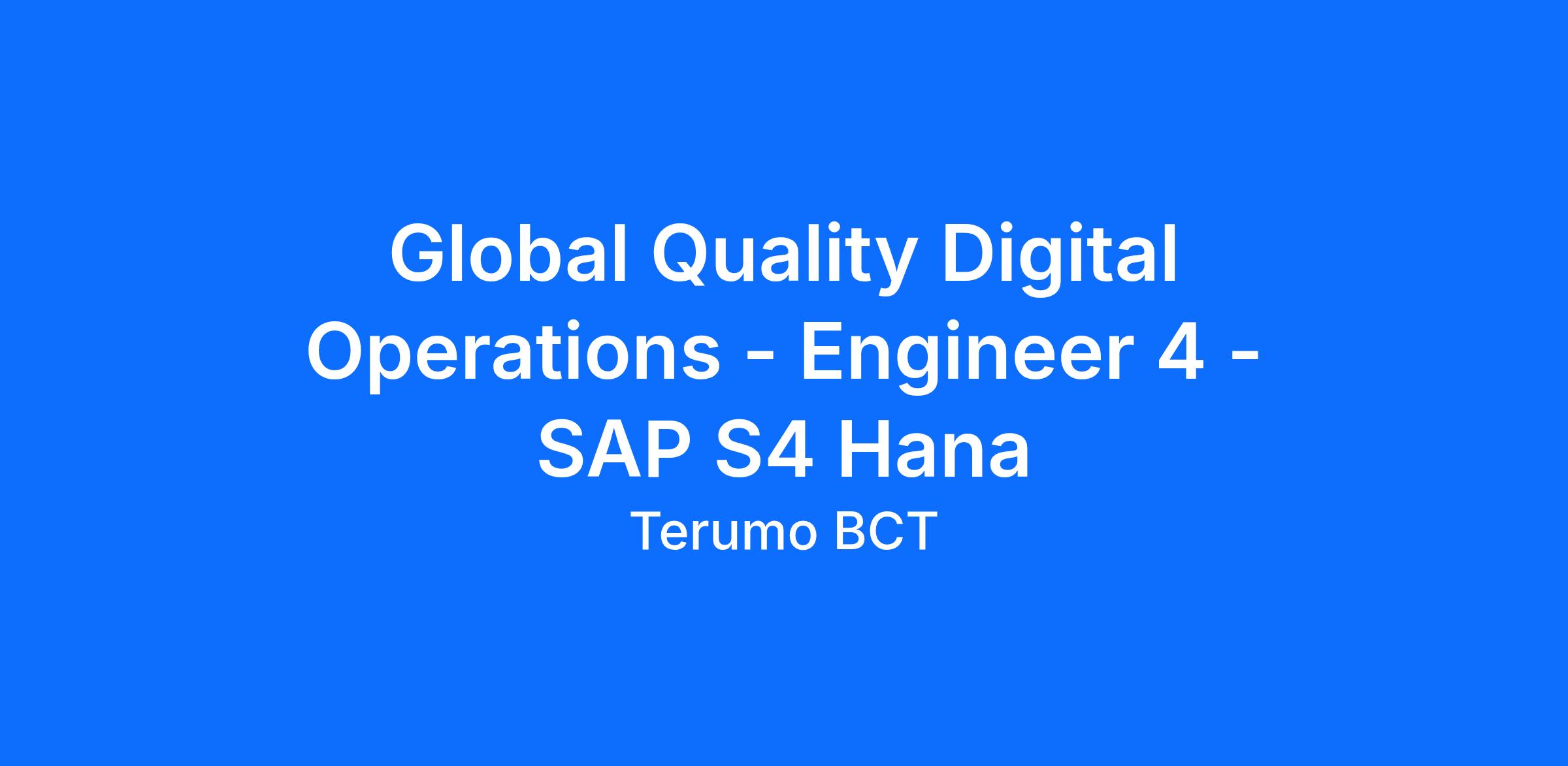 Global Quality Digital Operations - Engineer 4 - SAP S4 Hana