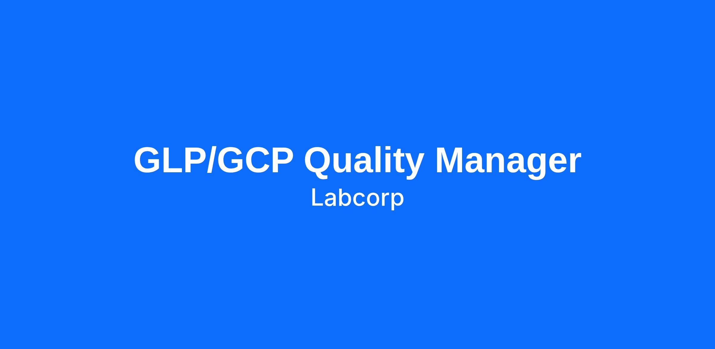 Additional Job Standards: Labcorp has a GLP/GCP Quality Manager opportunity at the Laboratory in Indianapolis, IN. The Quality Manager leads a GLP/GCP QA function and oversees all local aspects of functional operation and is accountable for maintaining client and regulatory satisfaction with all aspects of GLP/GCP compliance at the facility. Independent of Business Unit operations but maintains a reporting responsibility to the local Site Lead.
