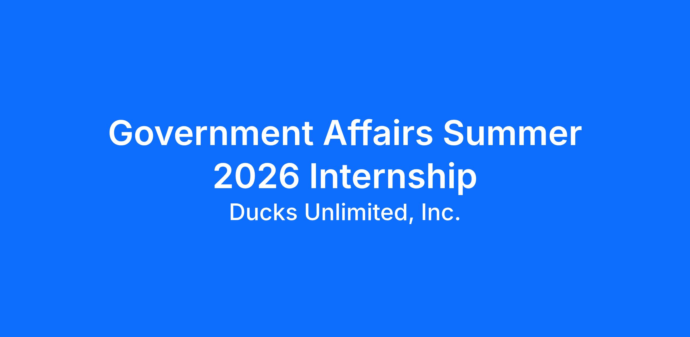 Ducks Unlimited seeks a motivated college student or recent college graduate to serve in our Washington, DC office as an intern for the Summer 2026 session, to start in early June. This person will assist in all facets of carrying out the public policy priorities of this office, including but not limited to assisting with major policy and fundraising events, tracking legislation, attending Congressional hearings and representing Ducks Unlimited at coalition and partner meetings when necessary.