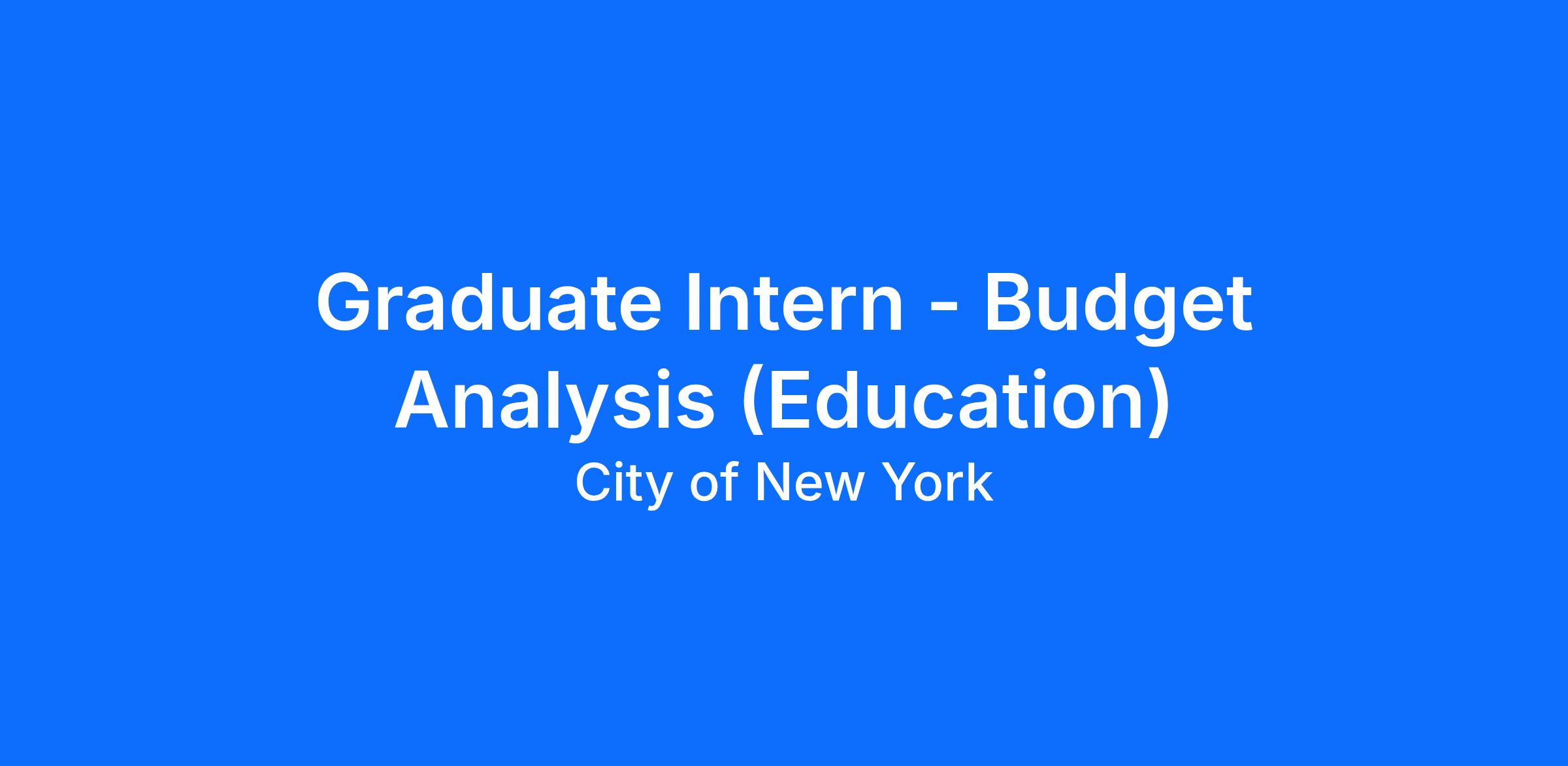QUALIFICATION REQUIREMENT: Matriculation at an accredited college. Employment is conditioned upon continuance as a student in college. Applicants must be enrolled in an accredited Graduate degree program for the Fall 2026 semester. This position is ideal for college students pursuing majors/minors in the fields of Public Policy and Administration, Political Science, Education Budgeting, Economics, Sociology.