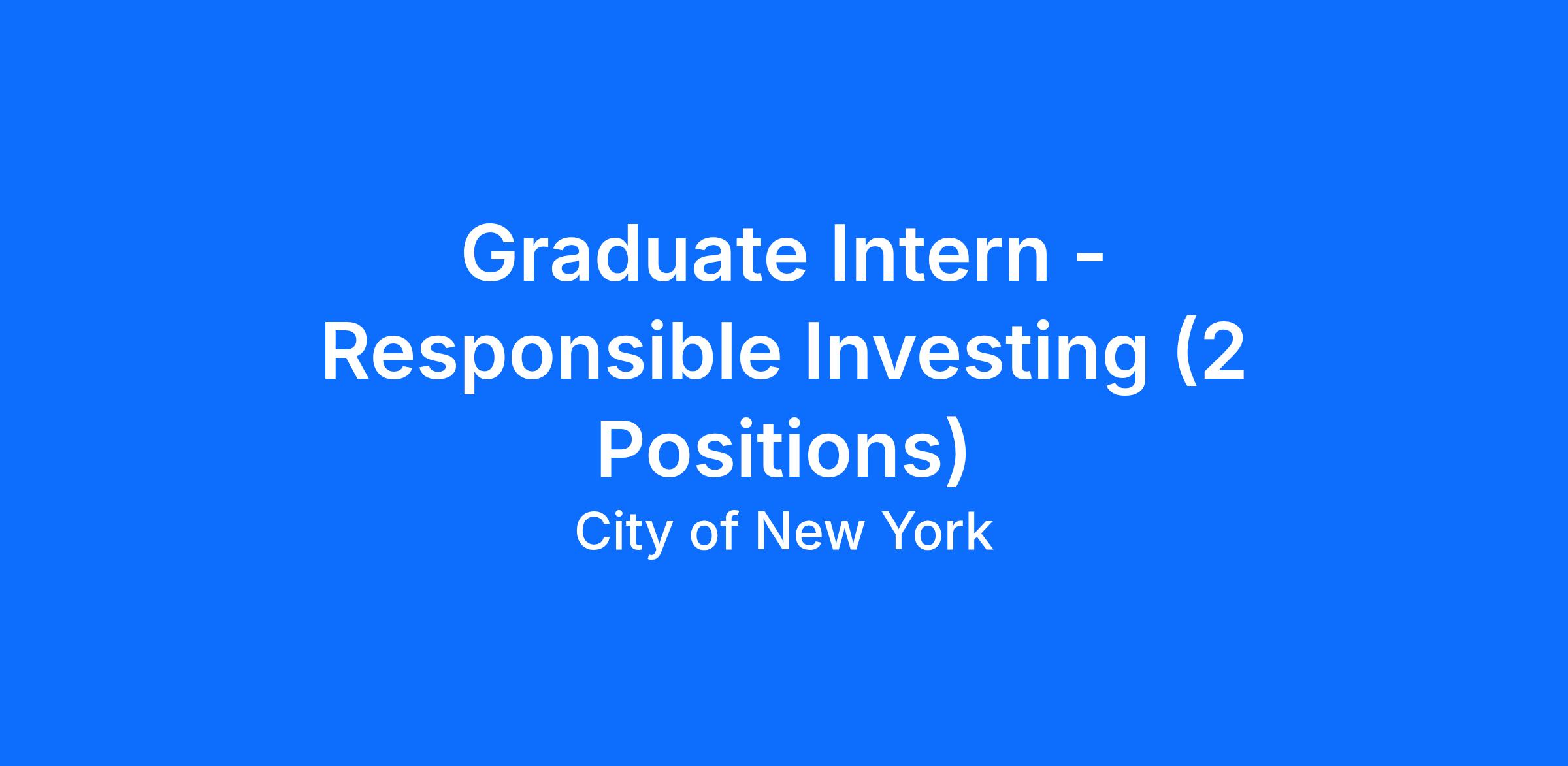 Responsibilities of the Responsible Investing Intern include, but are not limited to: