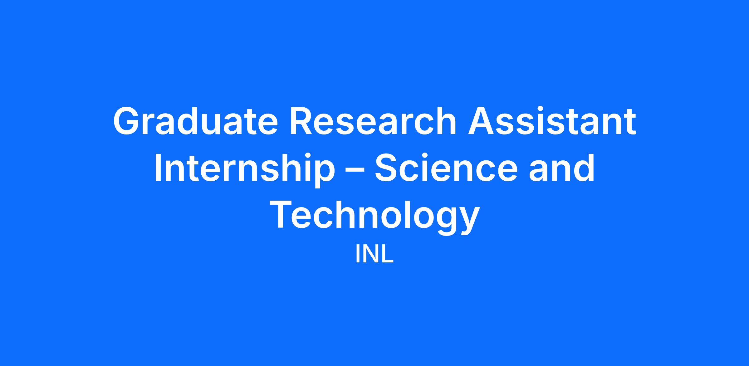 Idaho National Laboratory (INL) is seeking graduate students pursuing advanced STEM degrees (master’s or Ph.D.) to join our Science & Technology Internship Talent Pipeline. Graduate interns will contribute to high-level, mission-driven research that advances INL’s strategic initiatives in nuclear energy, national security, and critical infrastructure innovation.