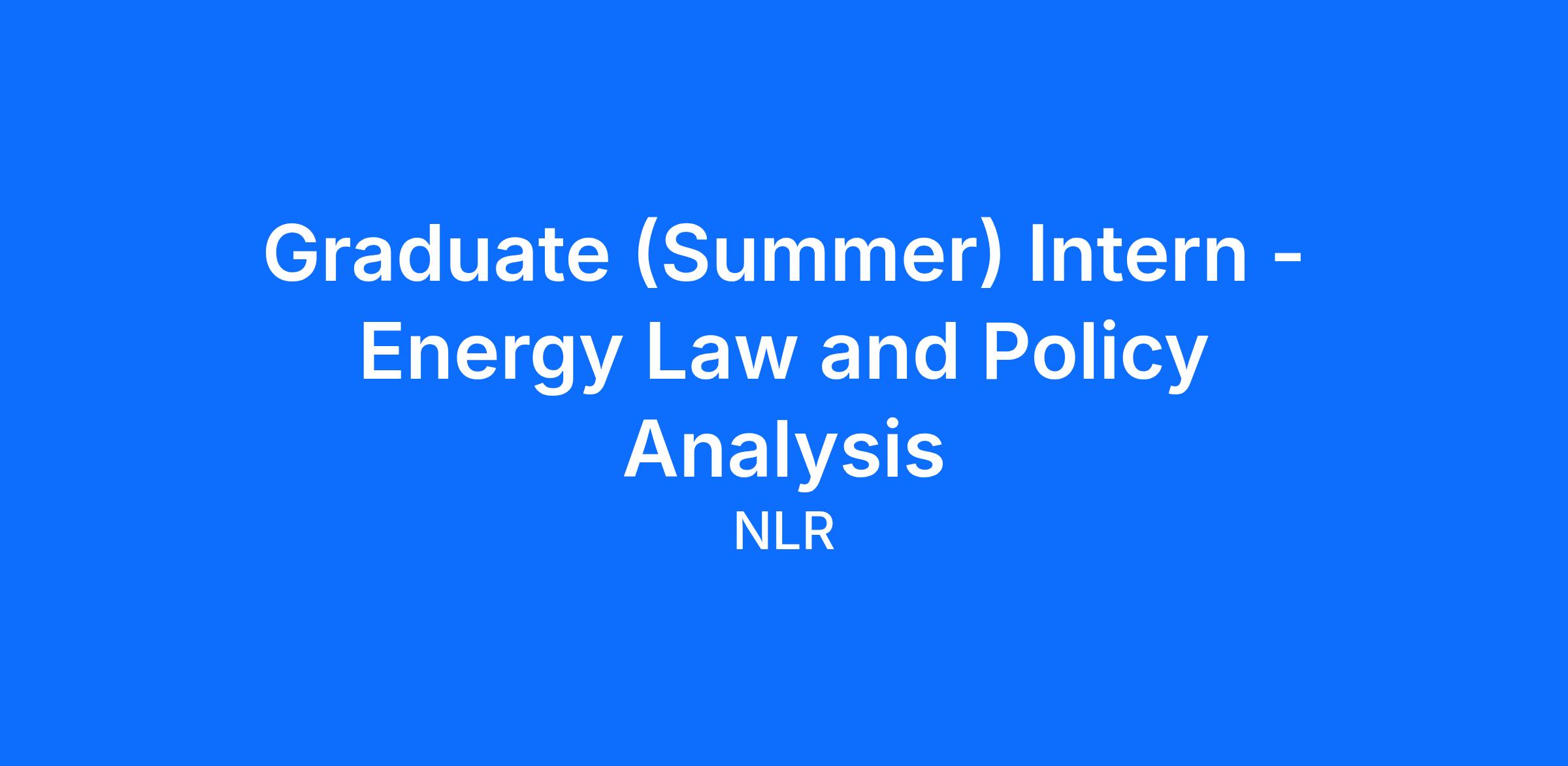 The Legal & Regulatory Analysis Intern will support the Policy Analysis Group within the Strategic Energy Analysis Center by conducting research and analysis on legal and regulatory issues related to energy innovation development and bulk electric transmission.