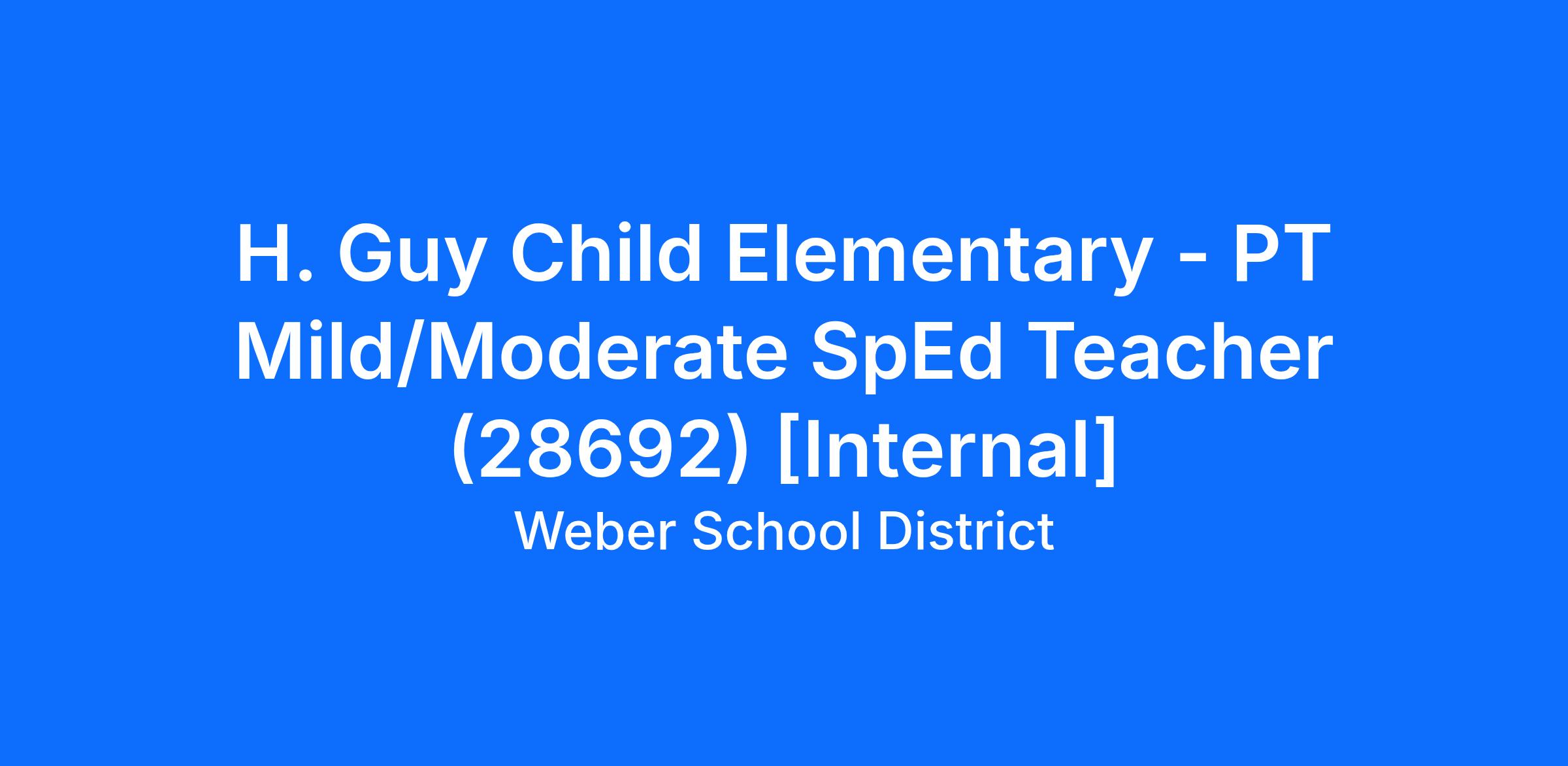 A position has been declared open in the Weber School District for a part-time Elementary Mild/Moderate Special Education Teacher. This position is for 4.00 hours per day, 182 days (9 months) per year, is compensated according to the Educator Salary Schedule, and is eligible for benefits as outlined in the Benefits Guide.