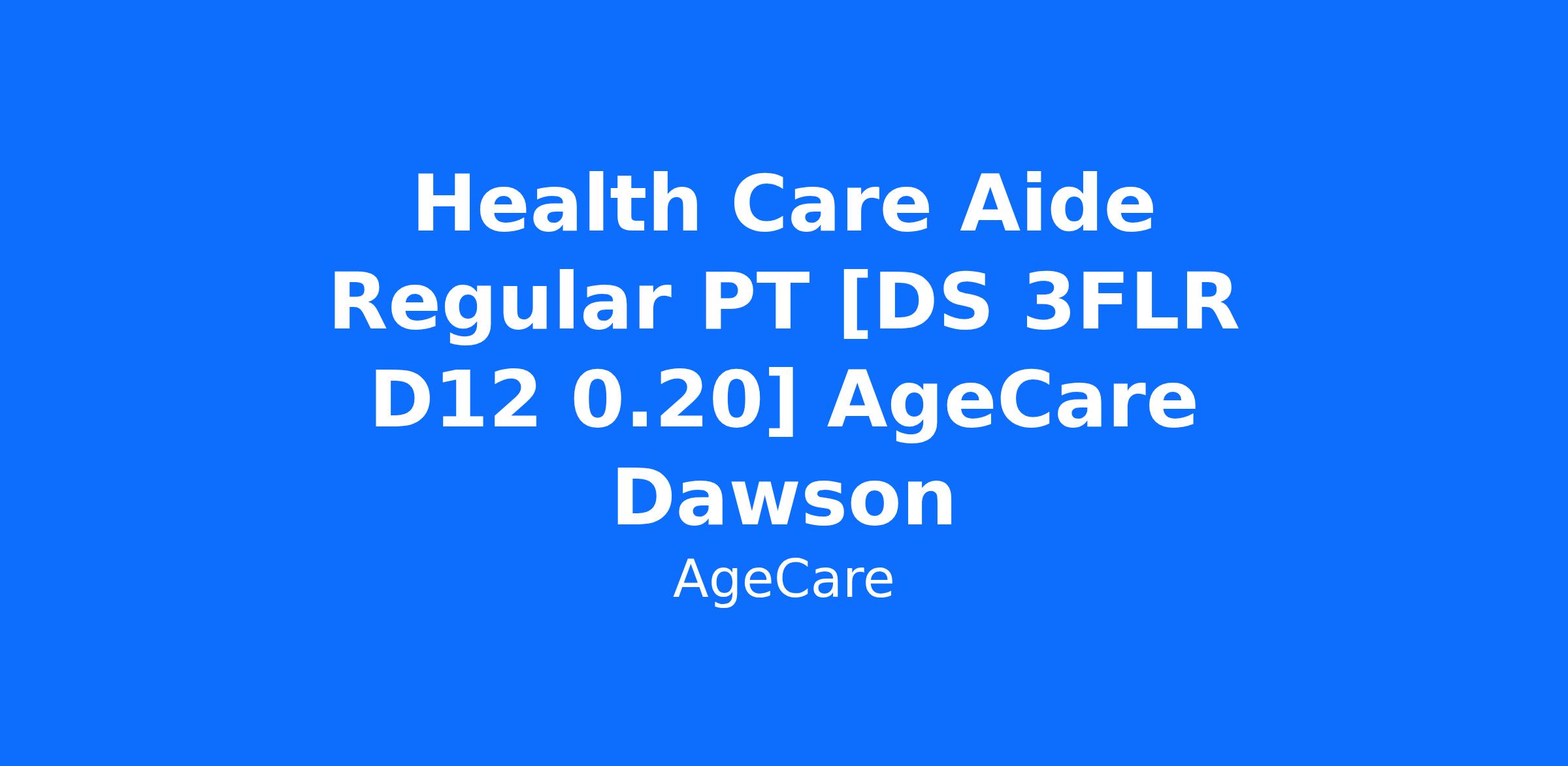 Health Care Aide Regular PT [DS 3FLR D12 0.20] AgeCare Dawson