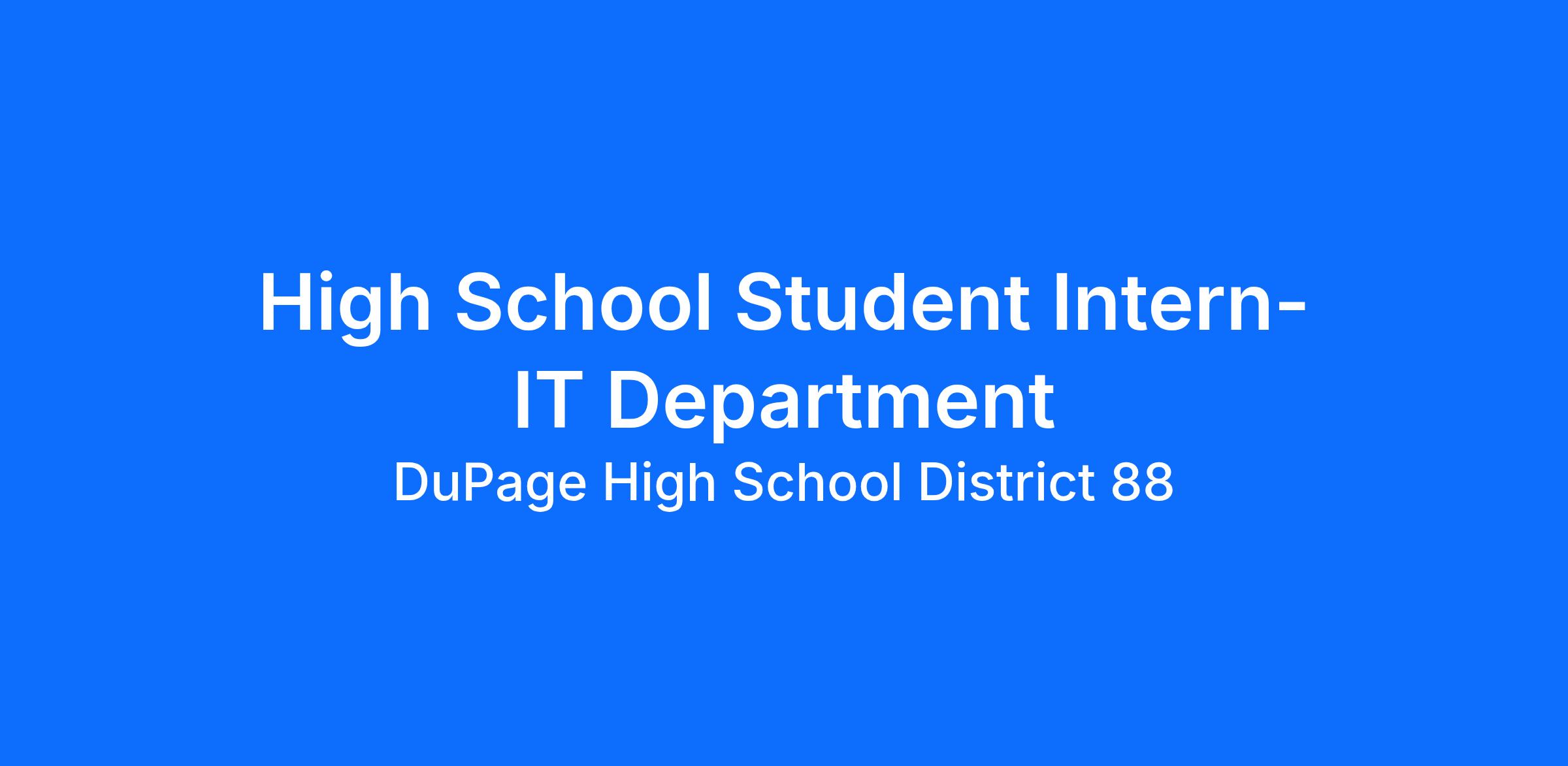 The DuPage High School District 88 IT Department seeks a motivated and enthusiastic High School Student Intern to assist with essential technology support tasks during the school year. This is an excellent opportunity for a student interested in gaining hands-on experience in IT, problem-solving, and customer service within an educational environment. The intern will primarily focus on repairing and maintaining Chromebook devices, responding to and resolving basic technical support requests, and assisting with other IT-related projects as needed.