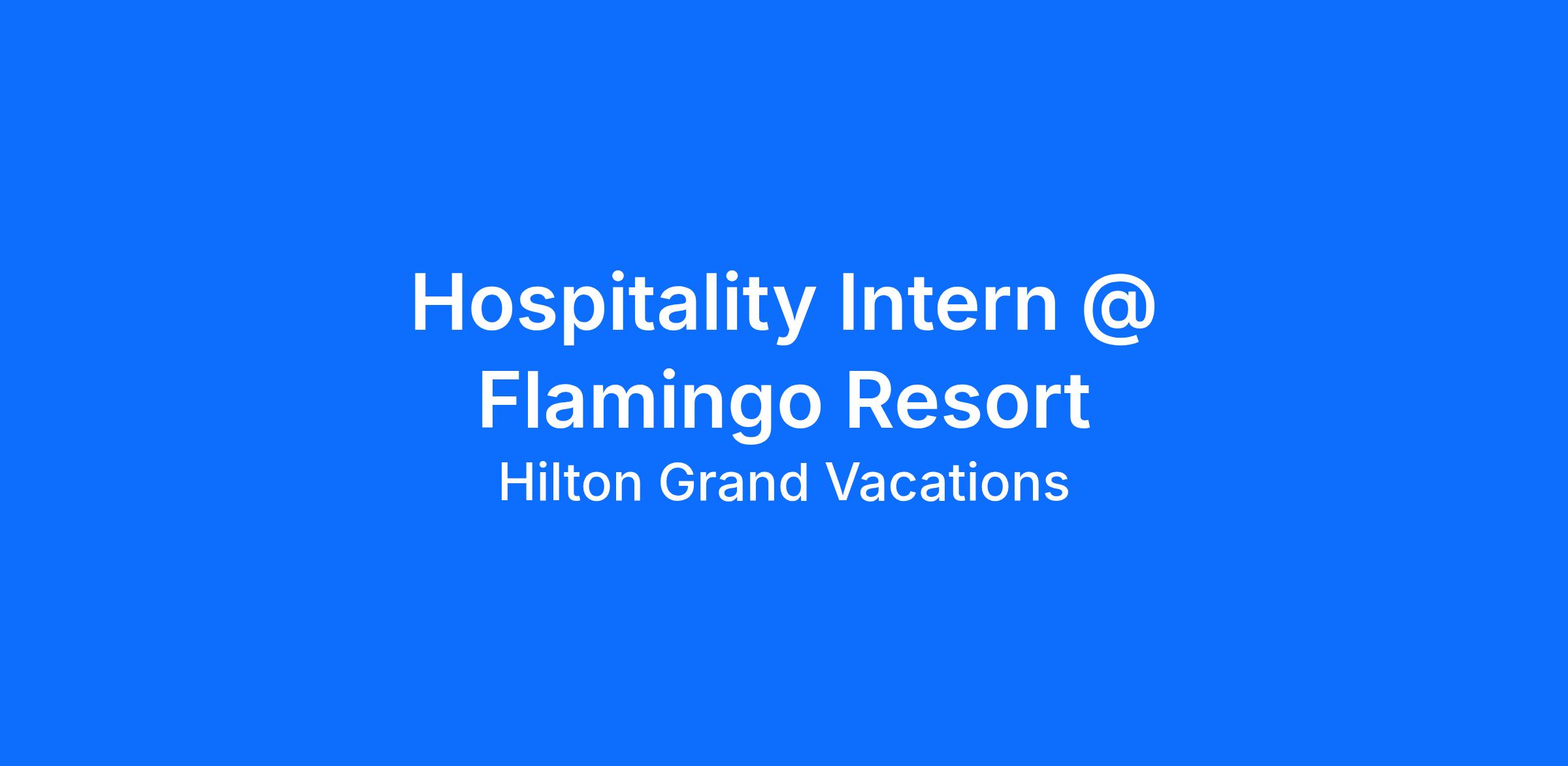 The HGV Intern at Flamingo Las Vegas, will participate in a ten (10) week, (June 1st – August 7th), immersive experience that will provide insight and competence into a designated Business Unit at Hilton Grand Vacations. Interns will gain work experience through project involvement, job shadowing, cross-departmental interactions, hands-on training opportunities, etc. Over the course of the program, Interns will be required to participate in several development opportunities through scheduled trainings, sales gallery and contact center tours, community outreach and corporate events. The program will culminate in a group presentation to a Senior Leadership panel.