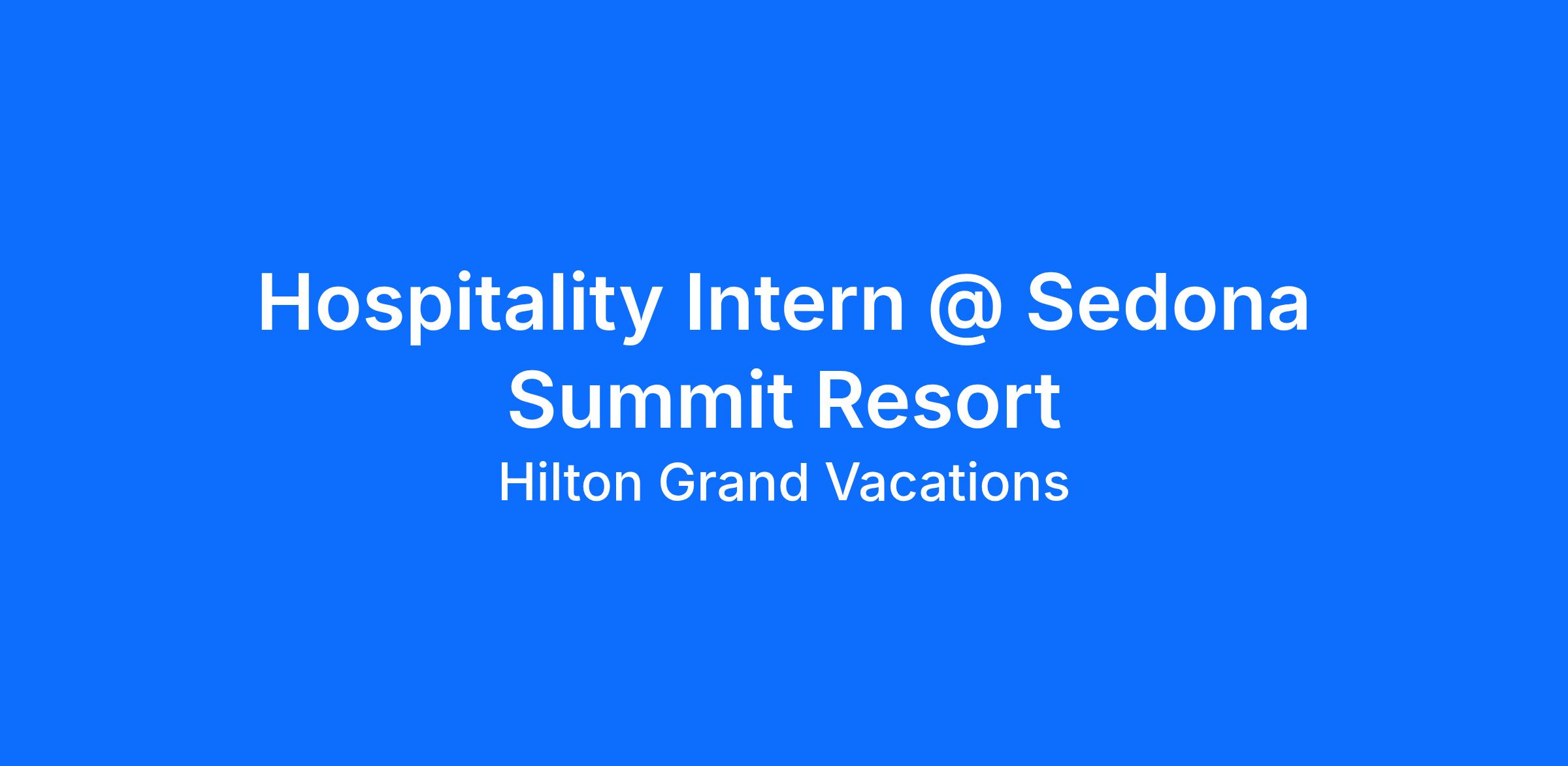 The HGV Intern at Sedona Summit, will participate in a ten (10) week, (June 1st – August 7th), immersive experience that will provide insight and competence into a designated Business Unit at Hilton Grand Vacations. Interns will gain work experience through project involvement, job shadowing, cross-departmental interactions, hands-on training opportunities, etc. Over the course of the program, Interns will be required to participate in several development opportunities through scheduled trainings, sales gallery and contact center tours, community outreach and corporate events. The program will culminate in a group presentation to a Senior Leadership panel.