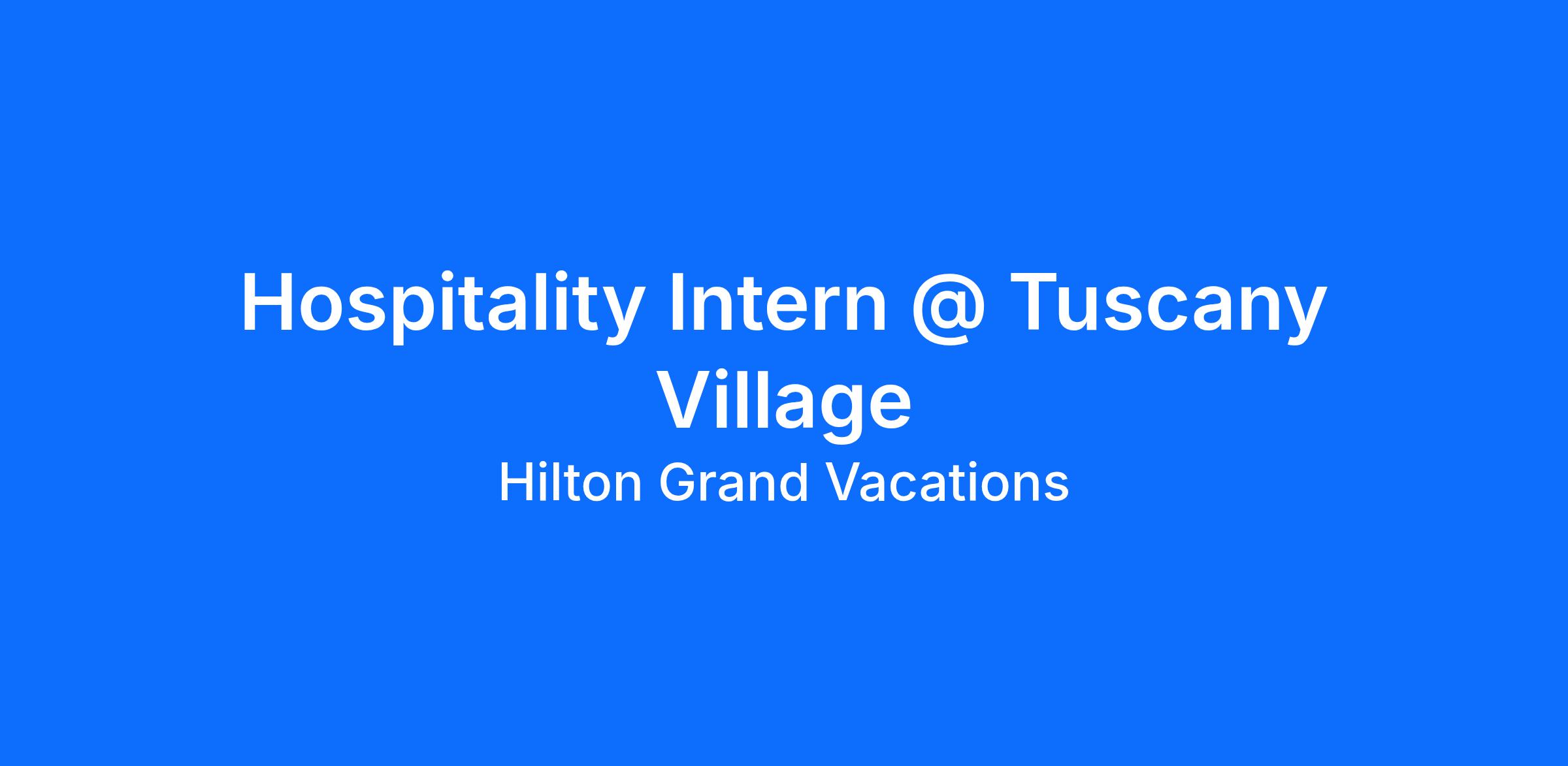 The HGV Intern at Tuscany Village , will participate in a ten (10) week, (June 1st – August 7th), immersive experience that will provide insight and competence into a designated Business Unit at Hilton Grand Vacations. Interns will gain work experience through project involvement, job shadowing, cross-departmental interactions, hands-on training opportunities, etc. Over the course of the program, Interns will be required to participate in several development opportunities through scheduled trainings, sales gallery and contact center tours, community outreach and corporate events. The program will culminate in a group presentation to a Senior Leadership panel.