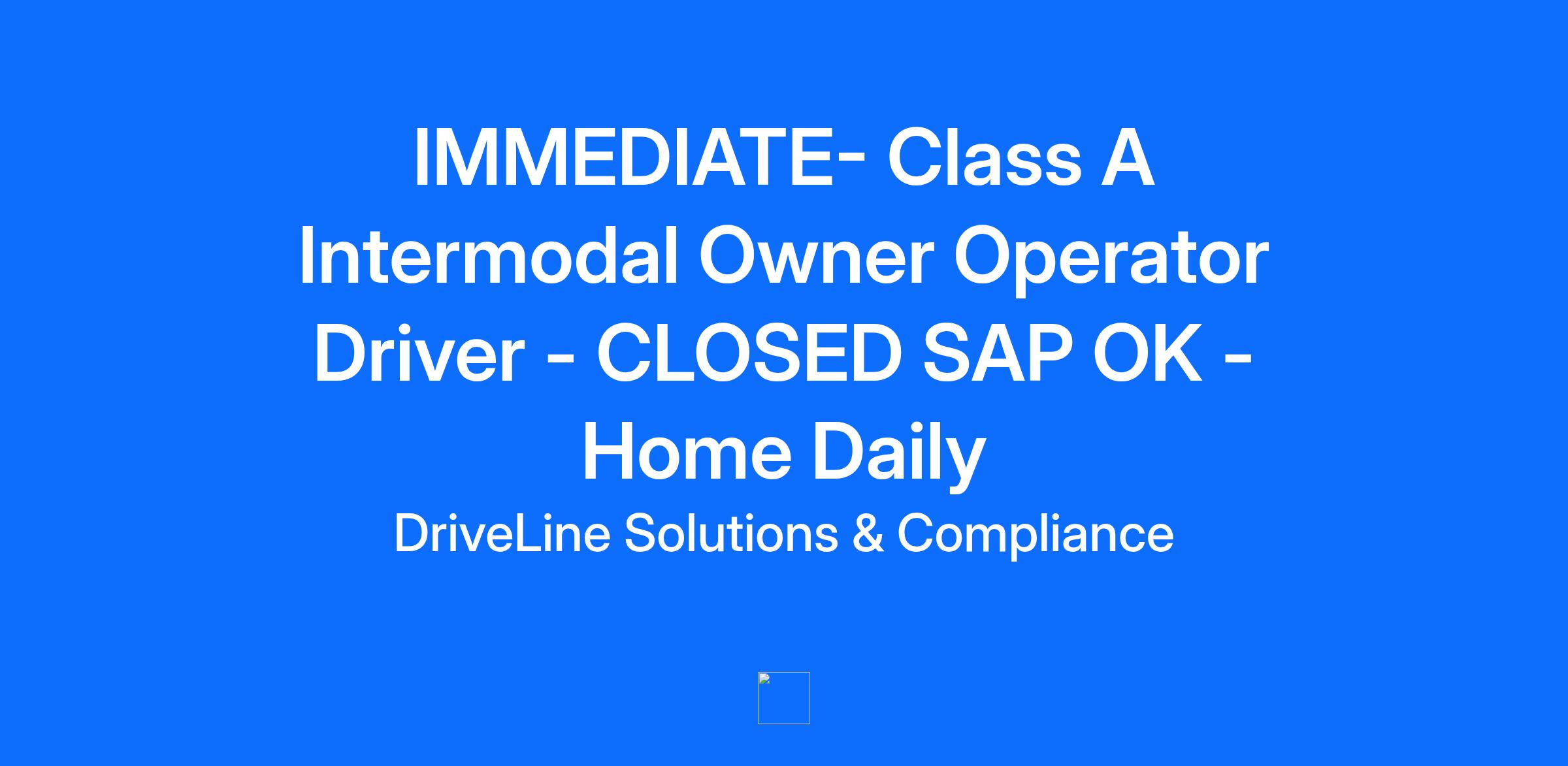 IMMEDIATE- Class A Intermodal Owner Operator Driver - CLOSED SAP OK - Home Daily
