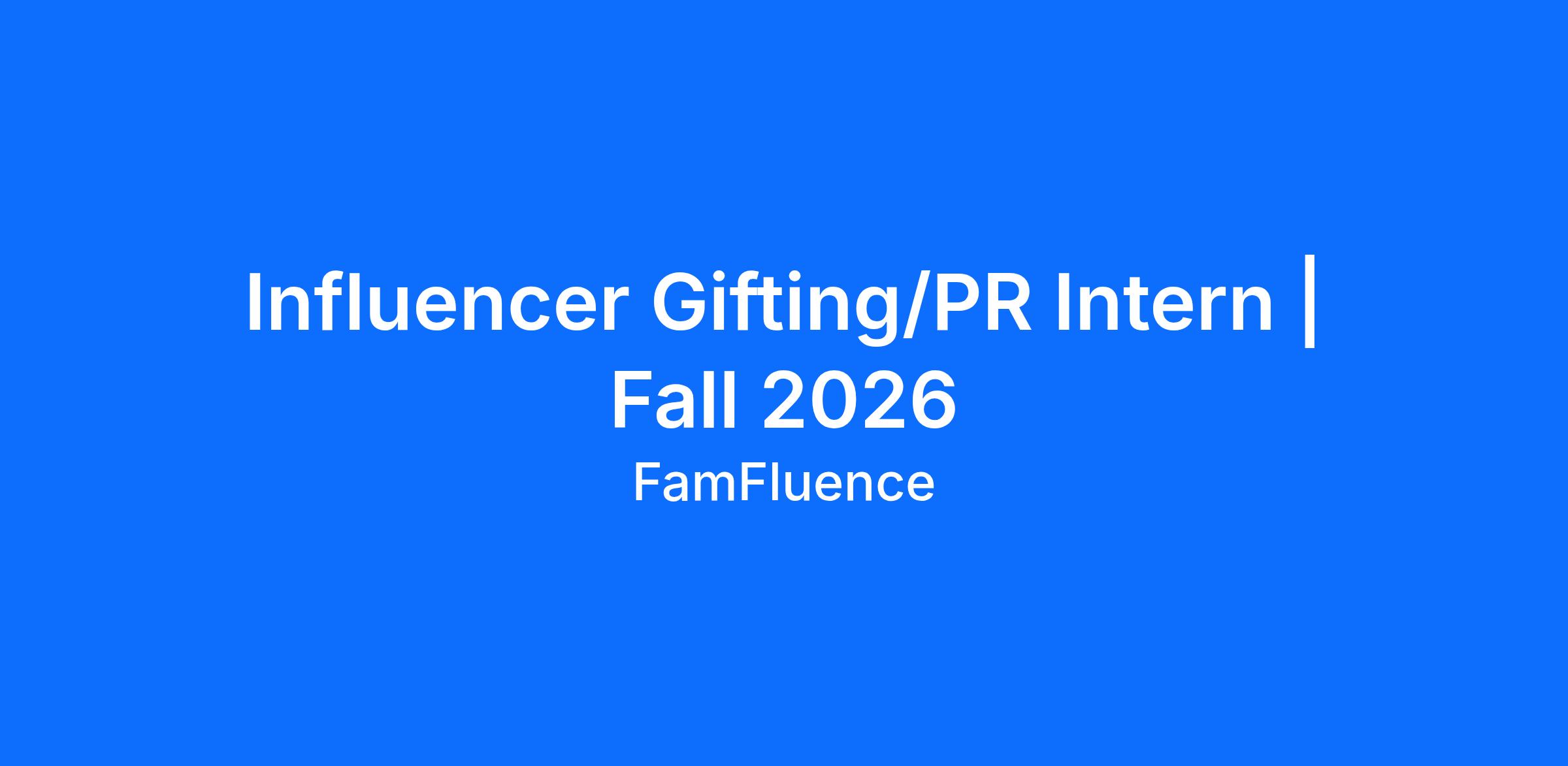 Influencer Gifting/PR Intern | Fall 2026
