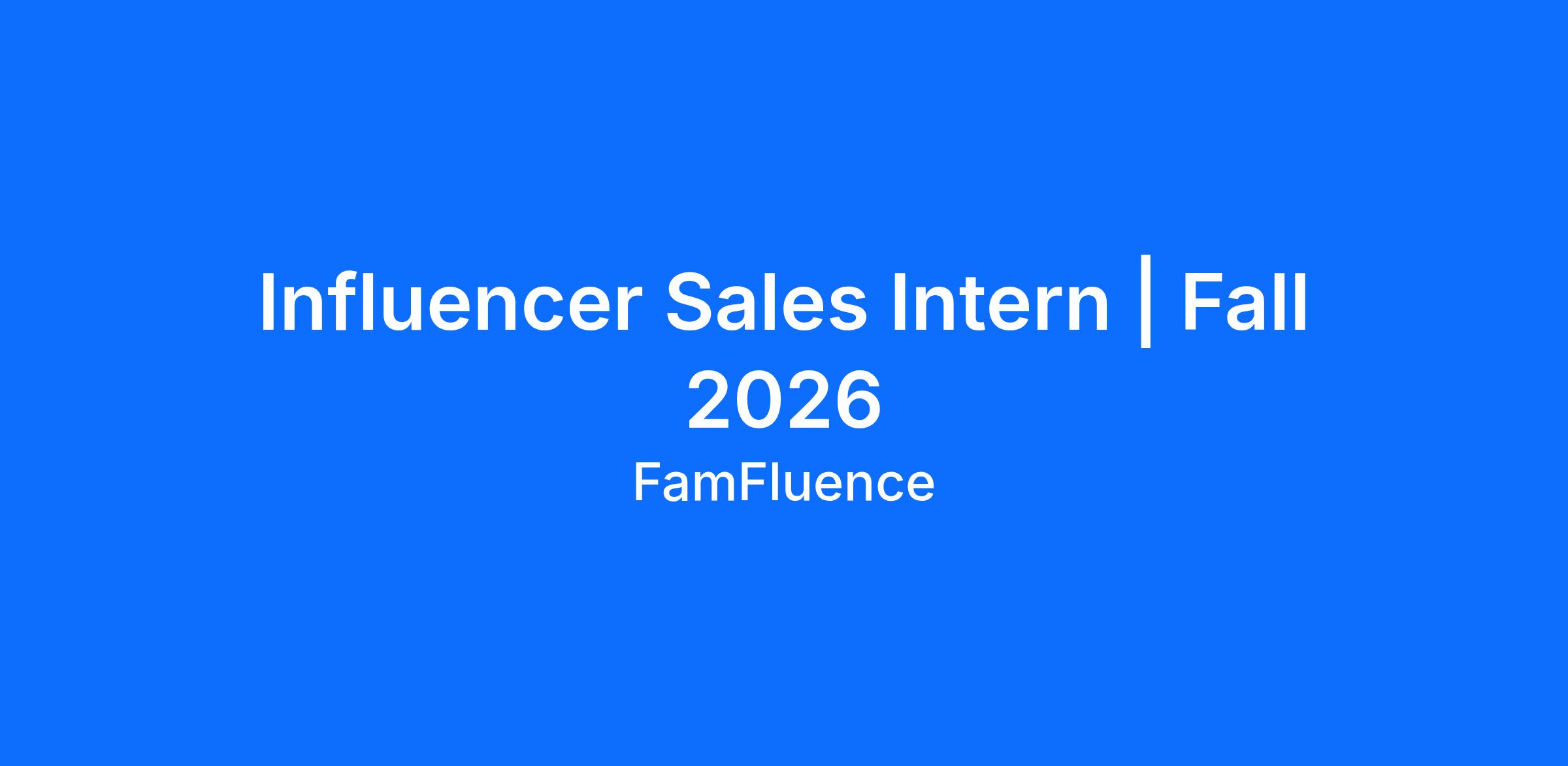 FamFluence Talent Management, a leading creator/influencer management agency exclusively representing 100+ of the top performing mom/family influencers in North America, is seeking an Influencer Sales Intern. This position is 100% virtual, with a collaborative workplace, and offers significant growth potential for a post-graduation role.