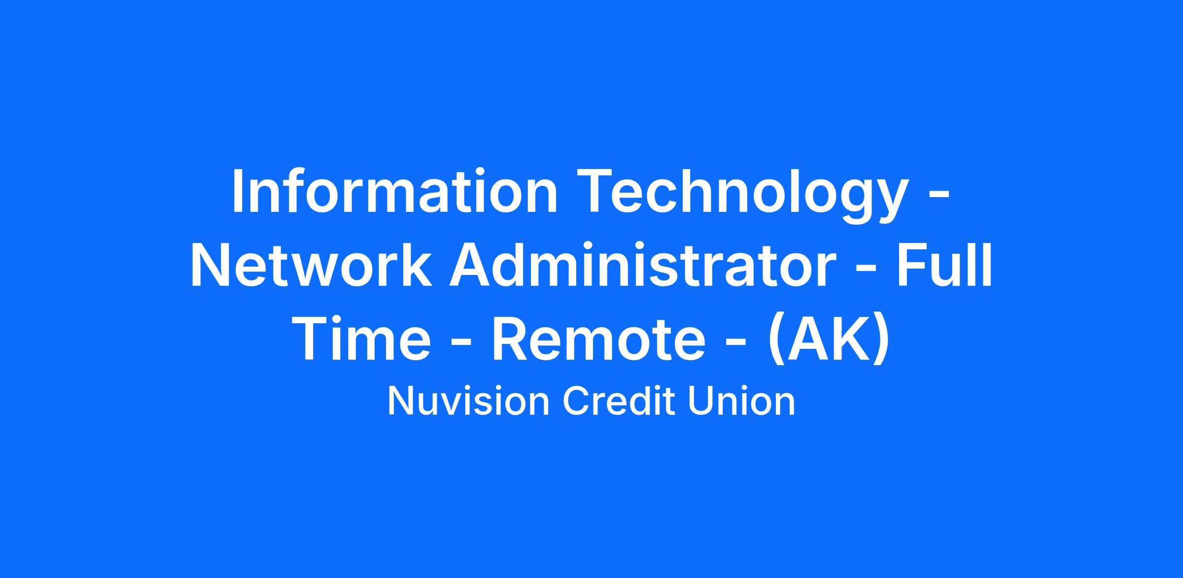 We embrace passionate Team Members who consistently display our values: United, Informative, Approachable, Caring and Transparent. We are united in our collective effort to achieve member goals and proactively provide solutions tailored to individual Member needs. We are committed to ensuring that each Member receives a positive service experience and trusted financial advice. Join the Nuvision Team today! Let us be part of your career journey!Under limited supervision of the AVP Network Infrastructure, maintain and monitor reliability, performance, and security of the Credit Union’s computer systems and networking equipment to ensure corporate productivity. Maintains the security and availability of the systems that are used to serve the member. Evaluates new technology that can be used to provide increased efficiency, productivity or achieve compliance for the organization.Responsibilities:Maintain network by monitoring circuit status and network performance and installing upgrades and patches. Resolves vulnerability assessments in a punctual manner. Monitor network equipment logs to determine impending failures. Authorized to contact vendor (under maintenance agreement) to replace component equipment such as hard drives, circuit boards and network appliances.Use network management tools to identify network traffic and recommend solutions to optimize network performance. Troubleshoot and resolve technical issues and cause. Design/plan for expansion or enhancement of network infrastructure.Troubleshoot network hardware or software issues. Analyze problem, identify the cause and resolve the problem in a timely manner. Consult with vendor technicians and/or IT leadership when necessary.Supports projects: Is a contributing member of various project teams with the possibility of multiple team projects overlapping. Manages time and productivity to ensure projects stay within time and cost constraints. Works effectively with project manager and stakeholders, maintaining communications.Maintain users and security controls for local and remote network access.Maintain log for patches, upgrades, maintenance and repairs.Supports disaster recovery and business continuity: Assist with the ongoing testing of systems and data restores to ensure optimal processes are in place in case of disaster. Participates in routine disaster recovery and business continuity exercises. Replaces network equipment and installs new network equipment as necessary.Inventory network support contracts to ensure current licenses are in place.Support and participate in continuous improvement activities.Represent the Credit Union in a positive professional manner.Maintains member and other sensitive information with confidentiality.Other related duties as assigned.Minimum Qualifications:3 to 5 years progressive experience in network support and analysis.Solid knowledge of TCP/IP protocols and the OSI model, Windows server suite, exchange network and network security.Must have working knowledge and understanding of network architecture.Exceptional interpersonal skills, with a focus on listening and questioning skills.Excellent verbal and written communication skills.Excellent diagnosis and troubleshooting skills.Preferred Qualifications:2 + years’ experience in network management, 5 + years’ overall experience in IT fieldWorking knowledge of:SD-WAN devices (Silverpeak preferred)Cisco switching and routingVPN and Firewall devices (Cisco ASA and Fortinet preferred)Wireless access points and VPN devices (Meraki preferred)Ability to conduct research into a wide range of computing issues as required.Ability to absorb and retain information quickly.Ability to present ideas in user-friendly language to non-technical staff and end-users.Cisco CCNA, Microsoft MCSE ceritificationEducation:BS Computer Science or equivalent combination of formal education and work experience.Website: nuvisionfederal.com/careers Pay scale by applicable geographic work location:Alaska: Min- $44.13/hr Mid- 55.17/hr Max- $66.20/hrThe base pay actually offered will take into account internal equity and also may vary depending on the candidate’s geographic region, job-related knowledge, skills, and experience among other factors. Benefits:MedicalDentalVisionLife InsuranceFlexible Spending Account401(k) MatchingPaid Time OffTraining ProvidedTuition Reimbursement