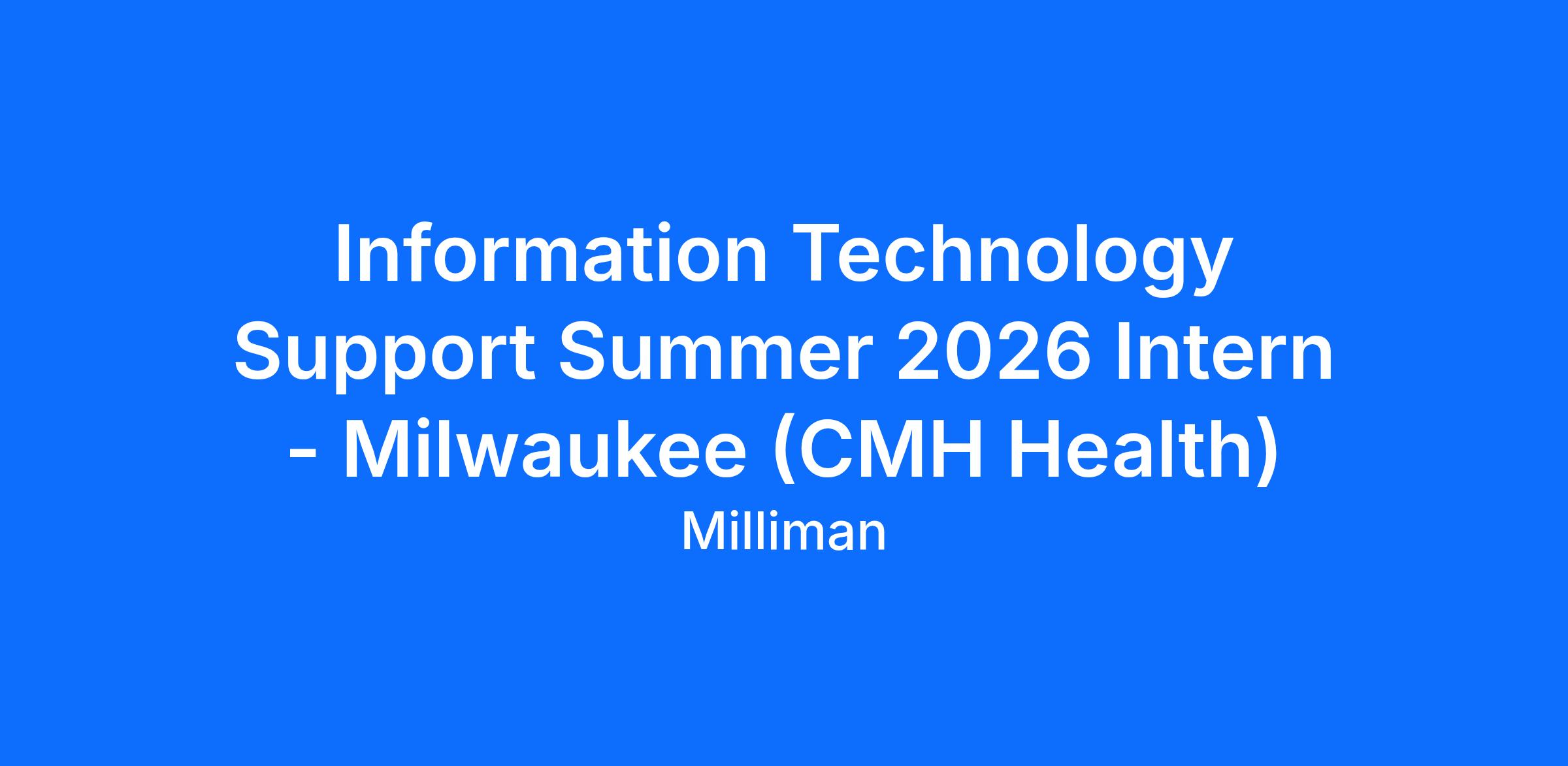 The IT Support department provides all aspects of support to local and remote users. We also control all local infrastructure and building conferencing and security systems. We are looking to add a full-time summer intern to our team. As part of this team, you will have very diverse duties and responsibilities. This position will be located on-site in our Milwaukee office located in Brookfield, Wisconsin from May through August 2026.