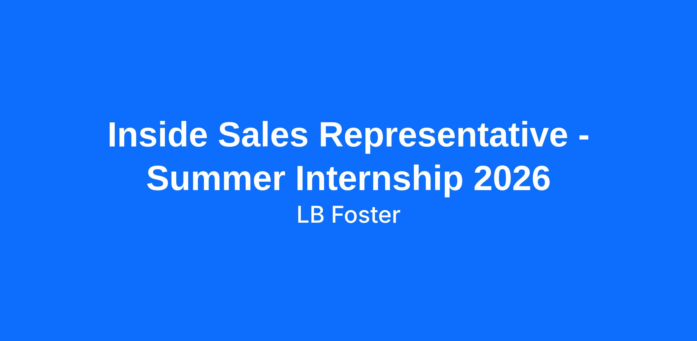 As an Inside Sales Representative (Summer Internship 2026) at LB Foster, you are an integral part of our Sales team; responsible for selling company's products / services by calling and quoting perspective and established customers. You are responsible for supporting and coordinating with the field service group and outside salespeople to meet established sales quotas by obtaining orders and identifying and developing new customers. This role monitors competitive activity and trends within a defined territory.