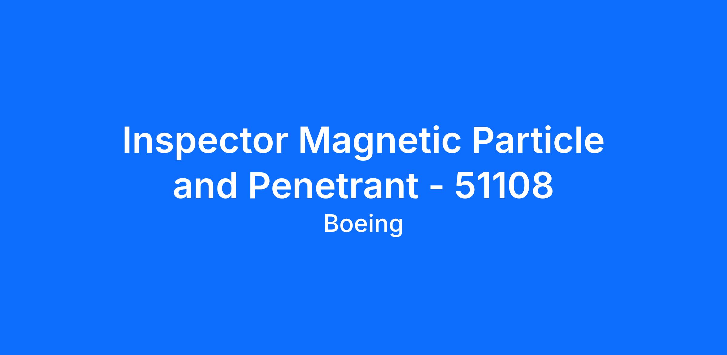 Boeing Commercial Airplanes is excited to offer opportunities for an Inspector Magnetic Particle and Penetrant A to join our Fabrication team in the Auburn, Washington.