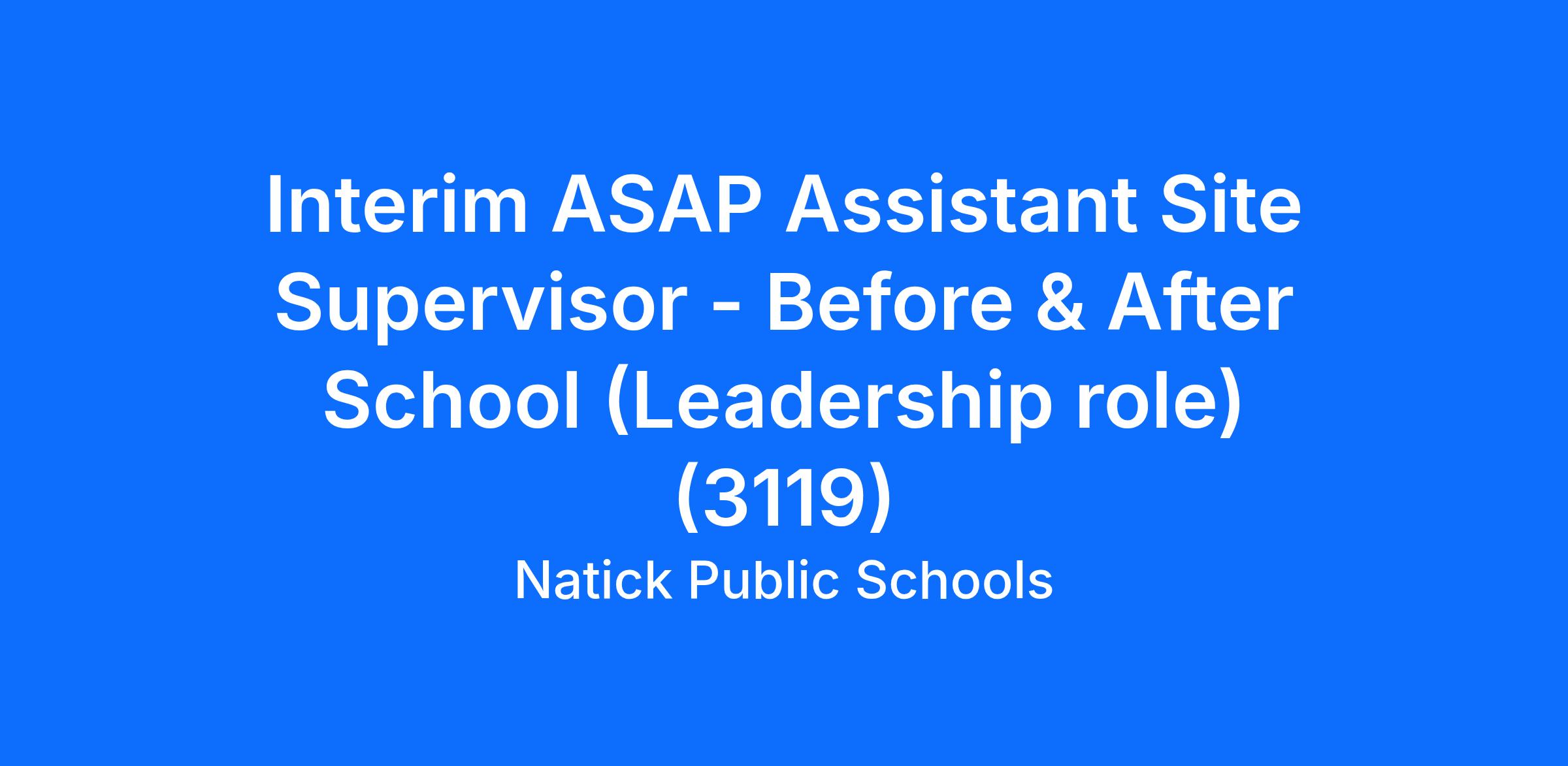 Interim Assistant Site Supervisor - Before & After School Program