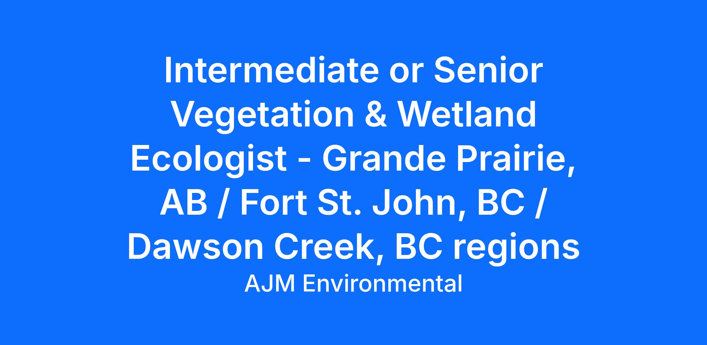 This posting is for an Intermediate or Senior Vegetation & Wetland Ecologist based in Grande Prairie, Fort St. John, or Dawson Creek who will play a key role in supporting and expanding AJM’s presence in the region.