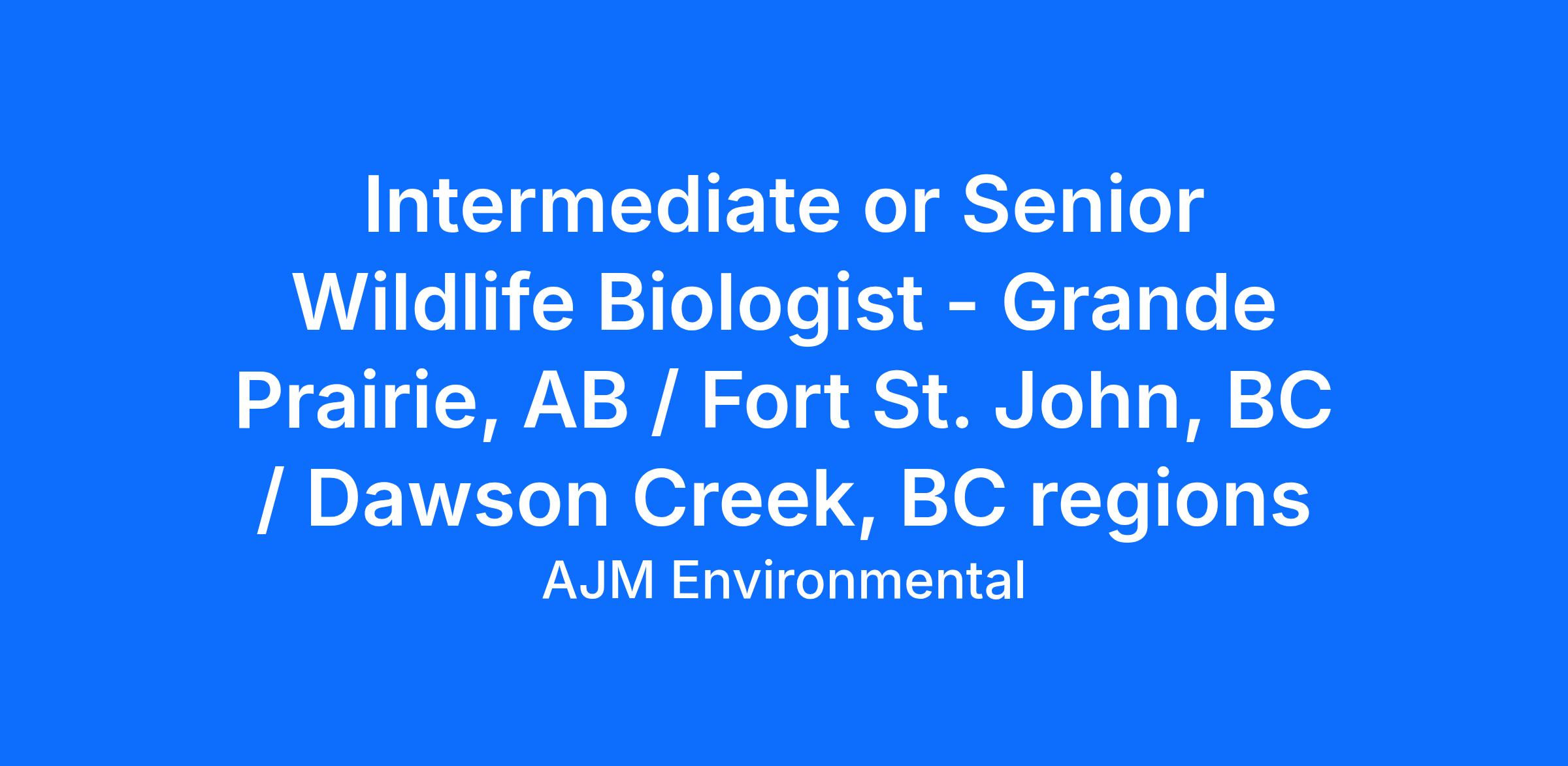 This posting is for an Intermediate or Senior Wildlife Biologist based in Grande Prairie, Fort St. John, or Dawson Creek who will play a key role in supporting and expanding AJM’s presence in the region.