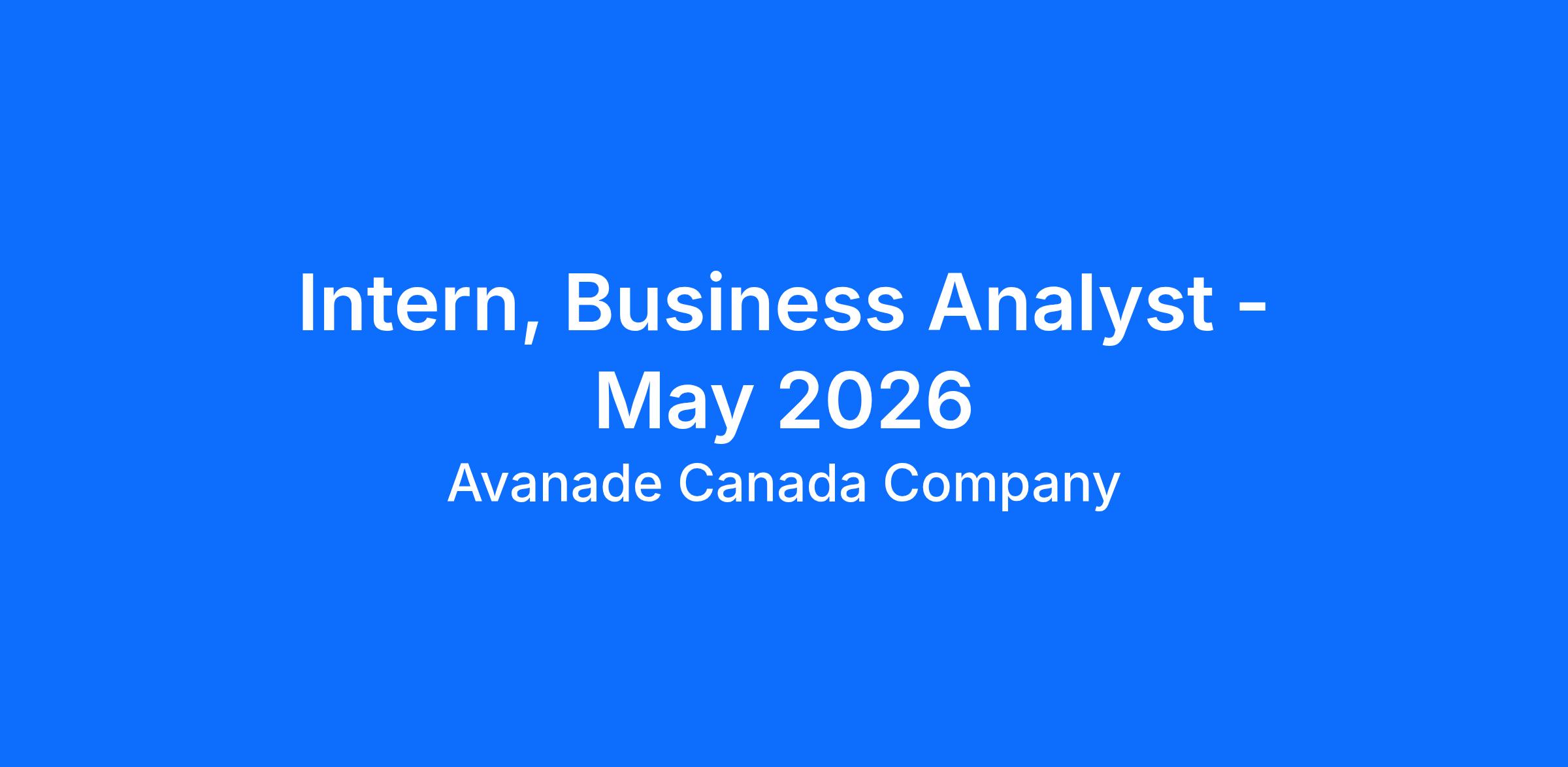 Intern, Business Analyst - May 2026