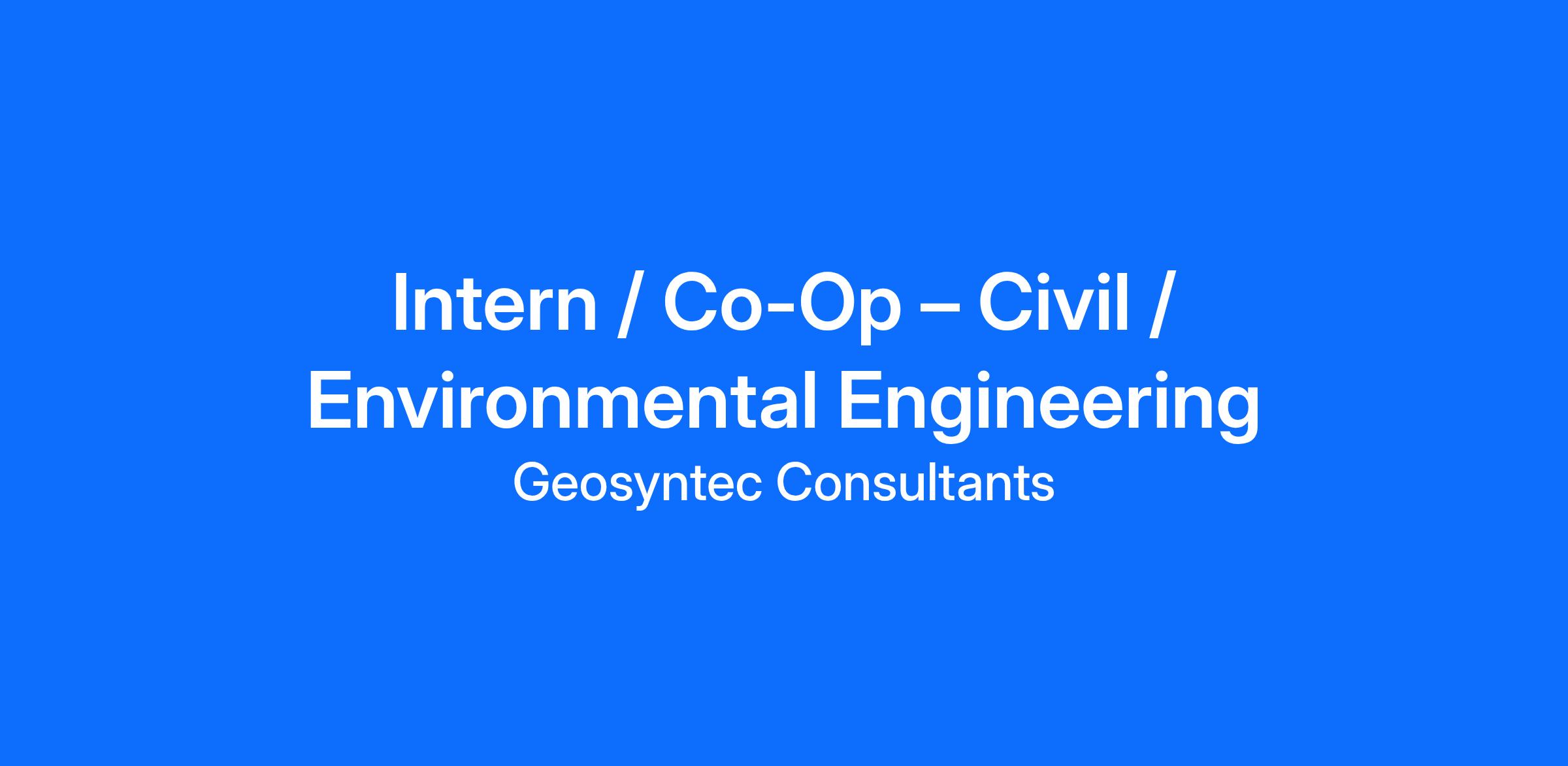 Geosyntec has an exciting opportunity for an Intern / Co-Op – Civil / Environmental Engineering in our Blue Bell, PA office. The position offers a student the opportunity to apply engineering (civil, geotechnical, environmental, chemical, and water resources) academic knowledge to real-world situations while also learning the business skills needed for a successful consulting career. The position is full-time (40 hours/week) for approximately 13 to 15 weeks for a semester in 2026. Preferred candidates would have the ability to return to the position for up to two additional semester rotations during their undergraduate or graduate studies. Candidates are responsible for coordinating their own transportation to and from the office.