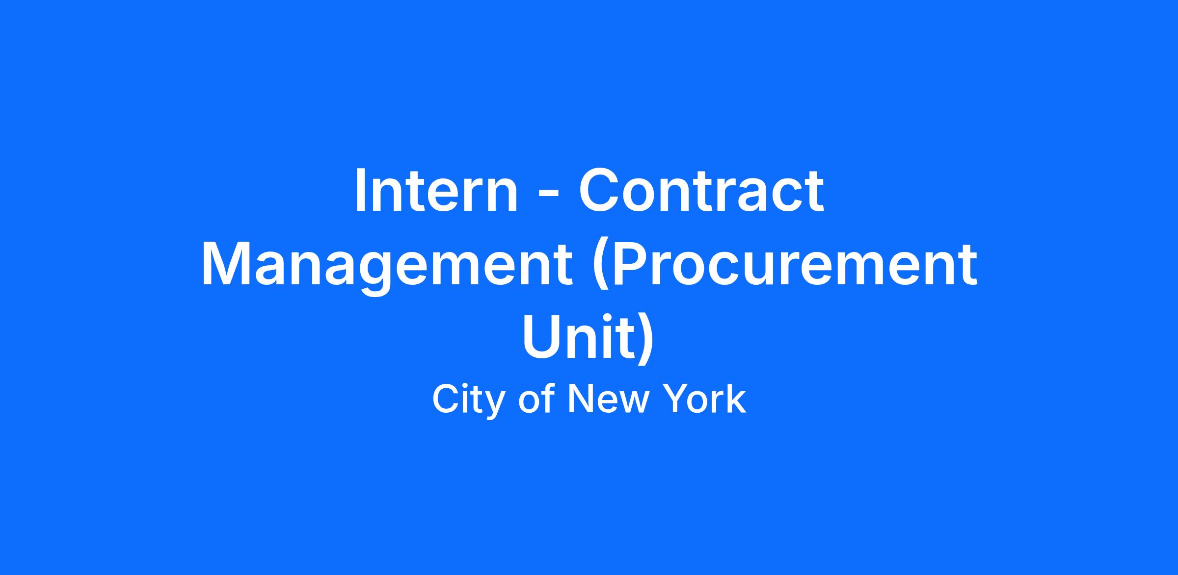 Responsibilities of the Contract Management (Procurement Unit) Intern include, but are not limited to: