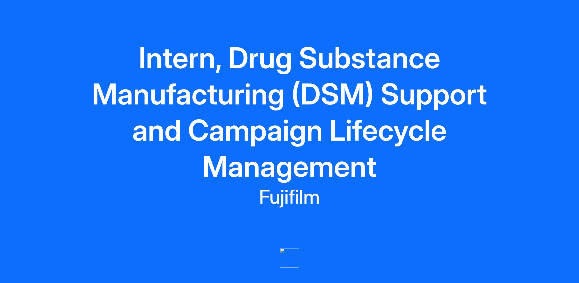 The Intern (Drug Substance Manufacturing (DSM) Support and Campaign Lifecycle Management) is part of the DSM support team tasked for preparing Campaign Readiness for Good Manufacturing Practice operations (GMP) in the manufacturing areas DSM 1 and DSM 2. As part of the CLM team, the intern gains hands-on experience with production schedule planning, project management planning and tools, as well as gaining knowledge of process equipment, flows, and execution.