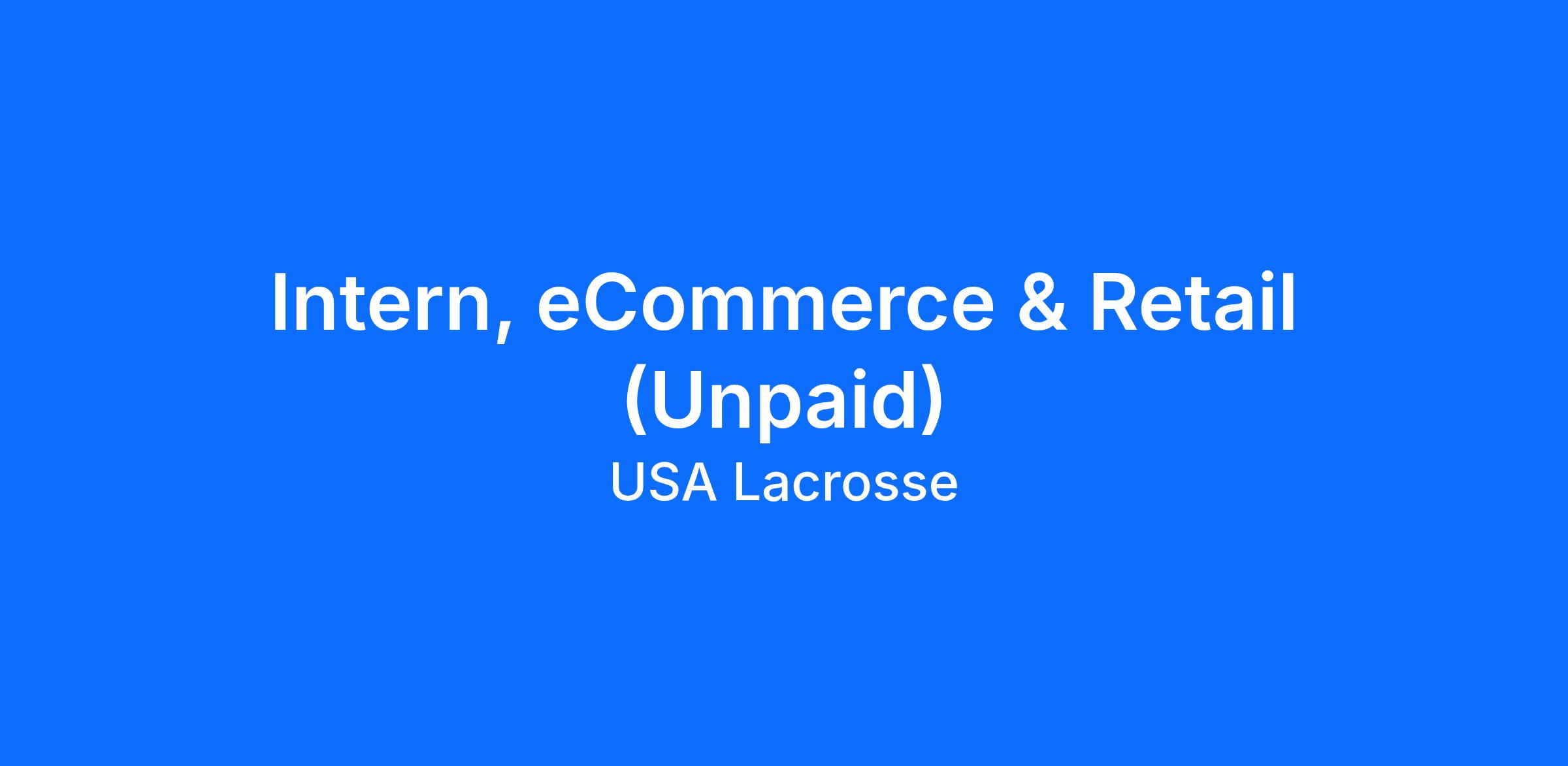 USA Lacrosse is looking for an unpaid/for credit intern to work with our eCommerce & Retail department. The Intern, eCommerce & Retail operations will work closely with the SR Manager, eCommerce & Retail to assist with operational tasks, reporting, content updates, and event preparation to directly support revenue growth, operational efficiency, and brand consistency while growing USA Lacrosse's presence across all touchpoints. In this hands-on role you will gain exposure to digital commerce, merchandising, inventory management, and how to ensure an exceptional customer experience.