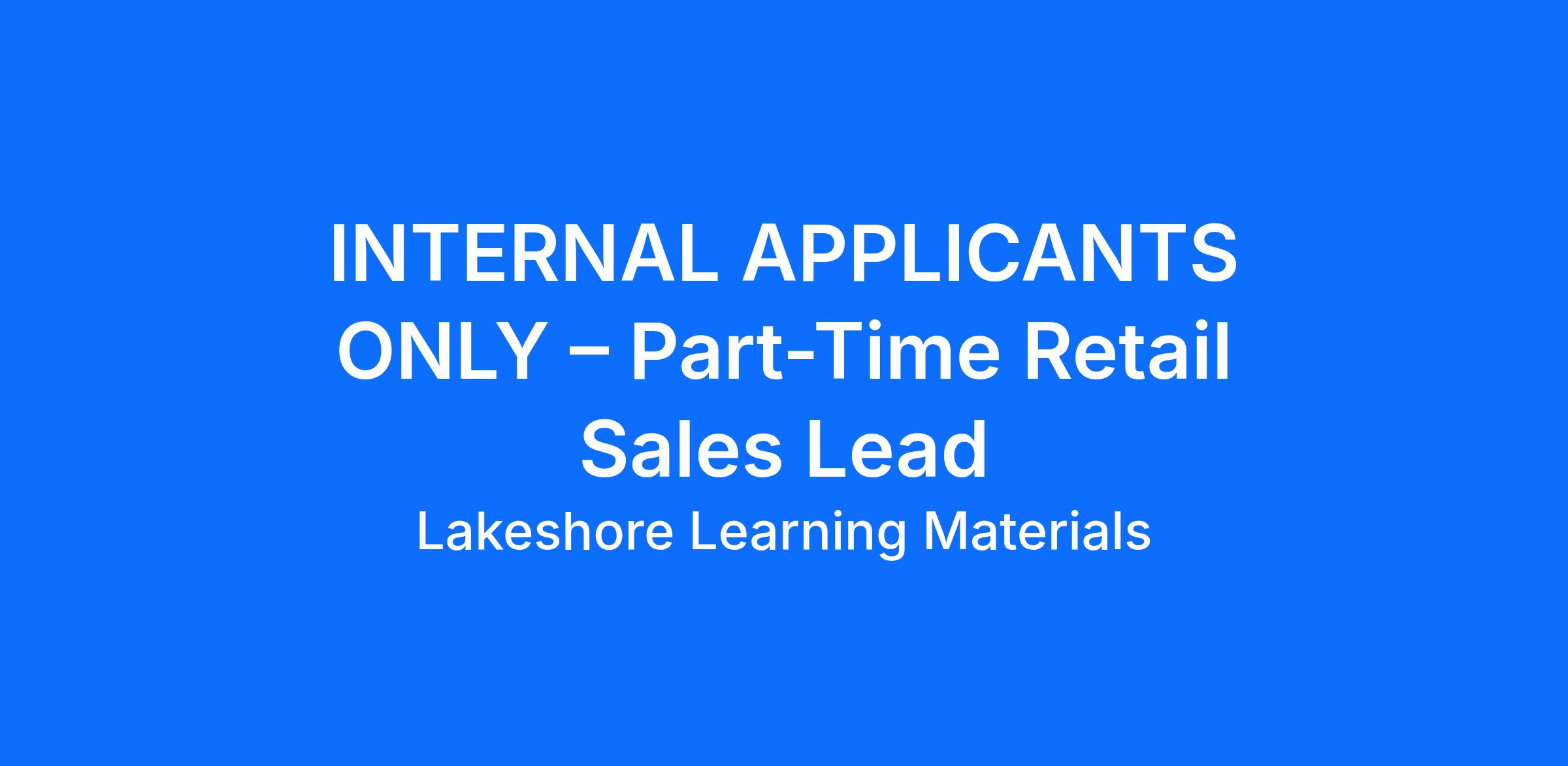 INTERNAL APPLICANTS ONLY – Part-Time Retail Sales Lead