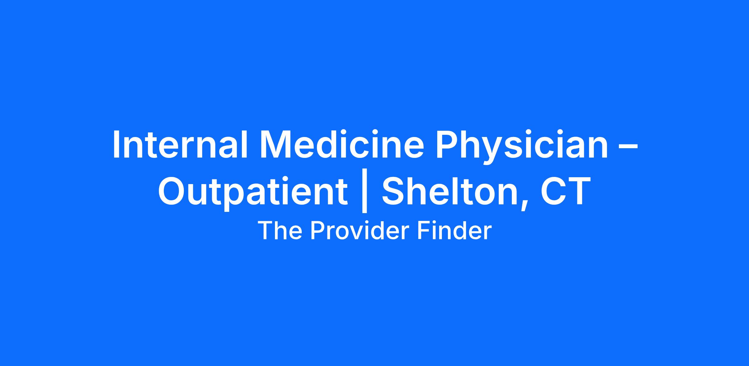 A well-established, community-focused healthcare organization in the Shelton, Connecticut area is actively seeking a full-time Internal Medicine Physician to join its growing outpatient network. This is an excellent opportunity to practice in a modern, team-based setting with strong clinical support and access to advanced resources.