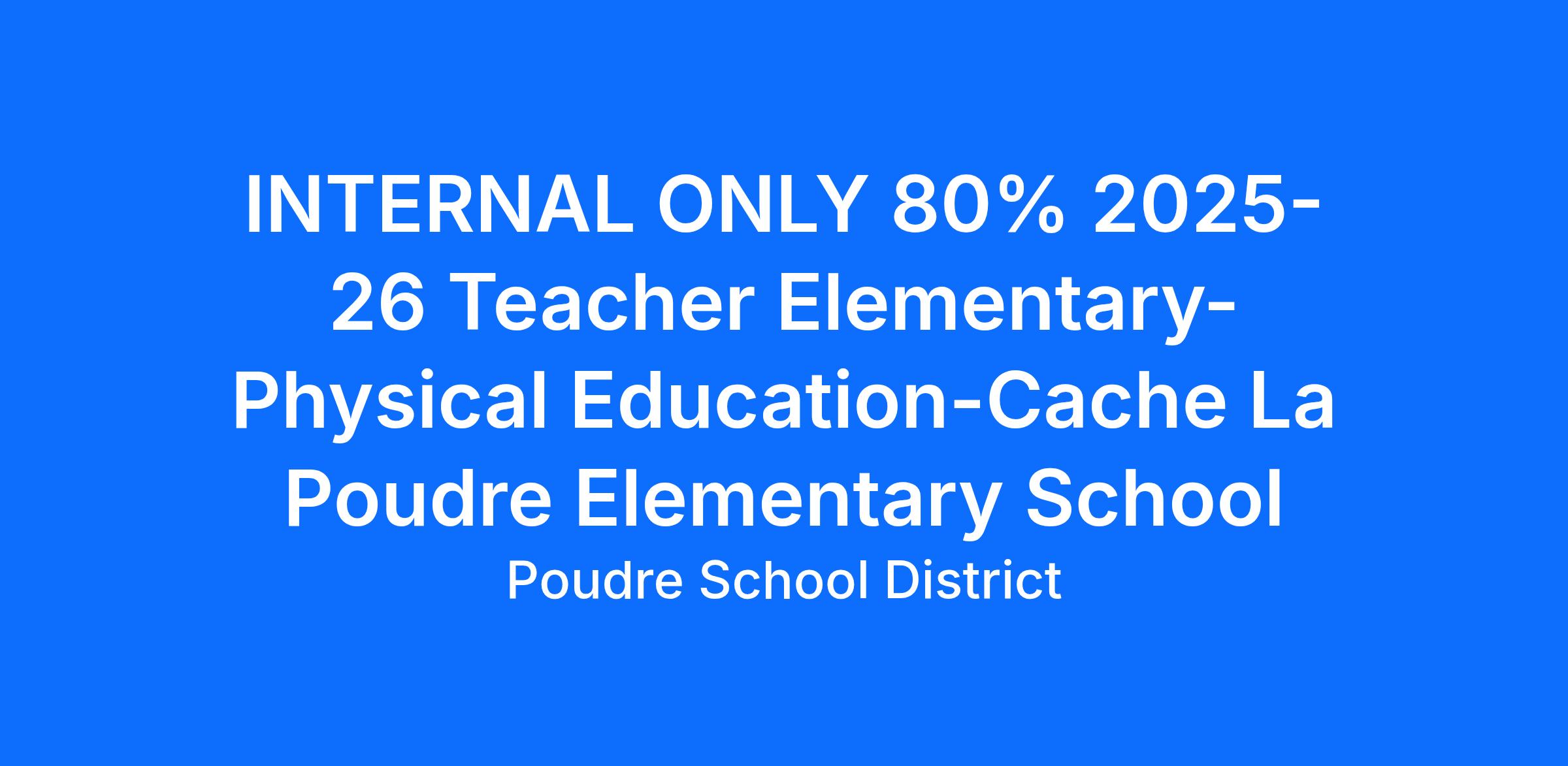 Information specific to this position: INTERNAL ONLY: Only current Poudre School District employees will be considered for this position; please do not apply if you are not eligible.