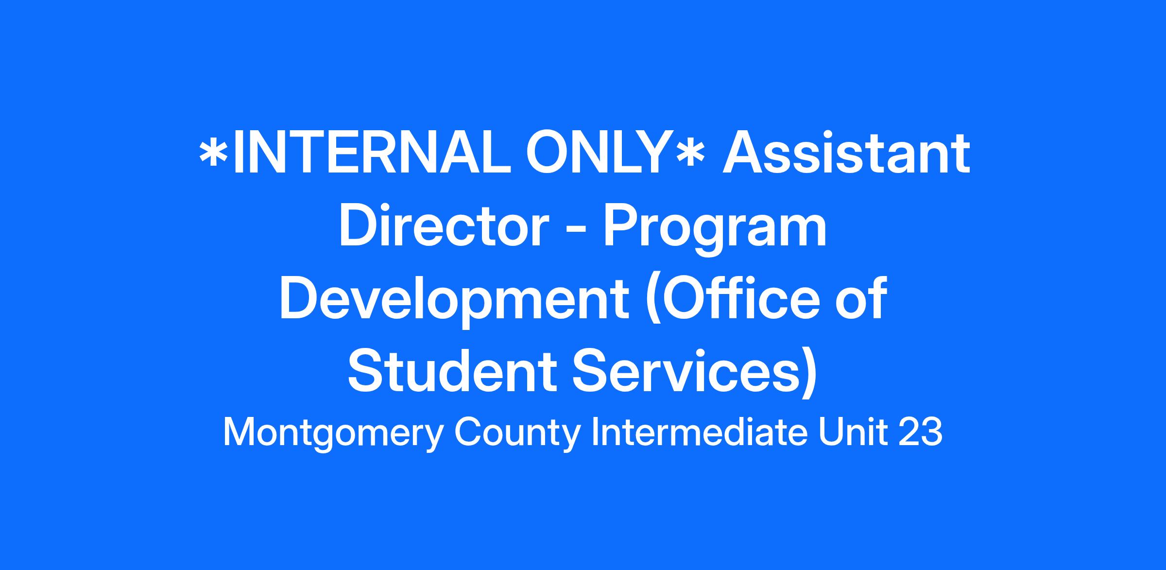A vacancy exists for an Assistant Director - Program Development for the Office of Student Services at the Montgomery County Intermediate Unit! The Assistant Director of Student Services will ensure comprehensive and continuous quality control of all Student Services programs. The Assistant Director will plan, organize, and supervise the activities of administrators and staff for the effective and efficient delivery of services.