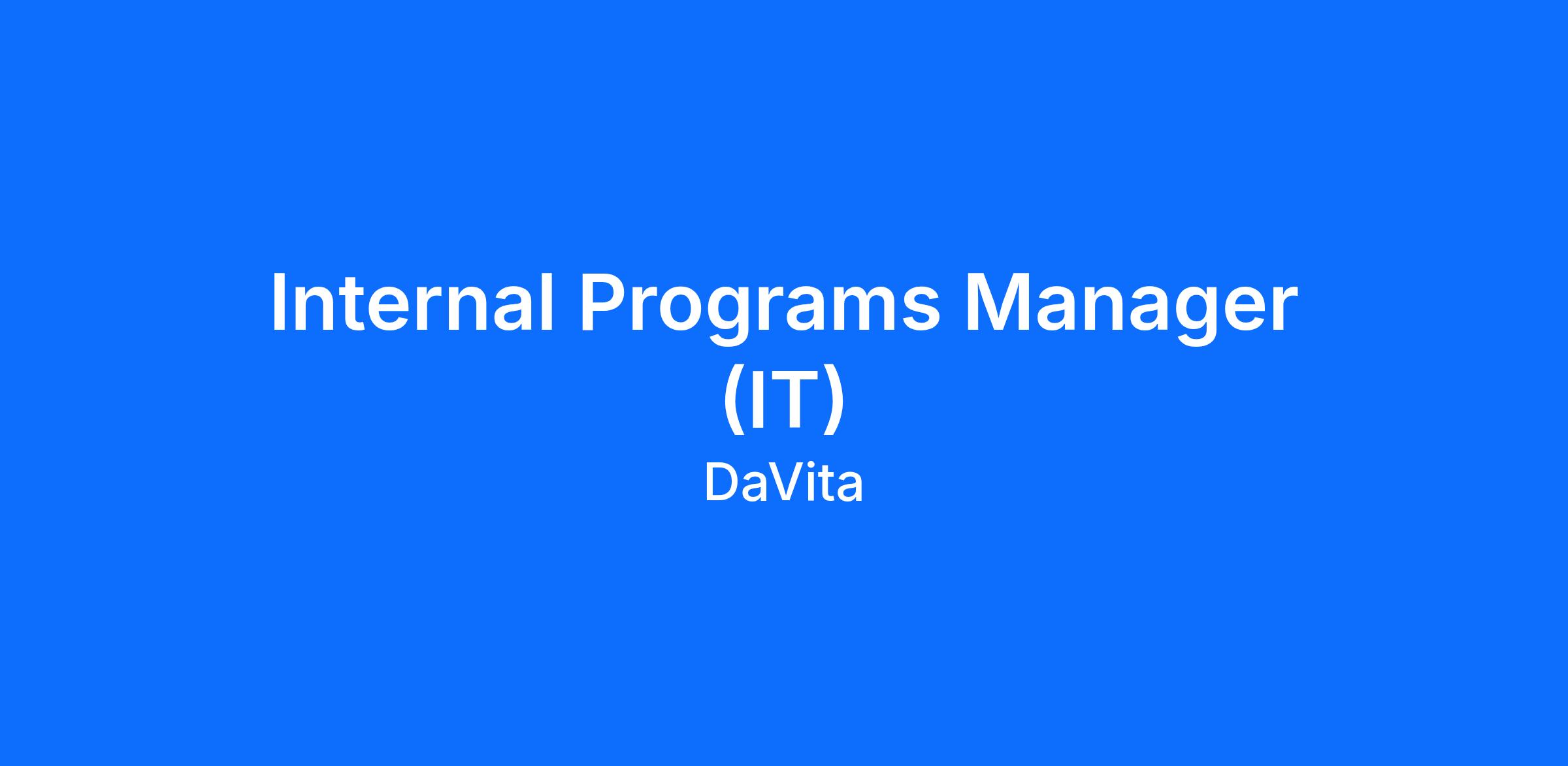 Operationally, the Internal Programs Manager will provide process leadership and support others in structuring projects and communications, and consult and lead in process improvements. The Internal Programs Manager is an integral role, expected to be fluent in products/services being developed, and make recommendations to the leadership team for collaborative decision-making on overall approach.