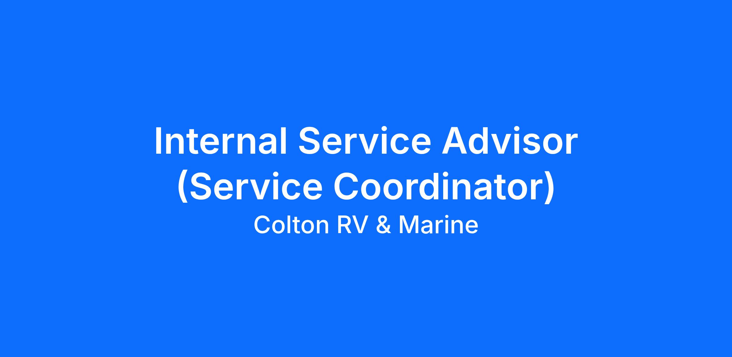 Do you thrive on organization, follow-through, and keeping complex processes moving forward? Colton RV & Marine is looking for a detail-driven Internal Service Advisor (Service Coordinator) to be the behind-the-scenes force that ensures sold units move seamlessly from sale to delivery.